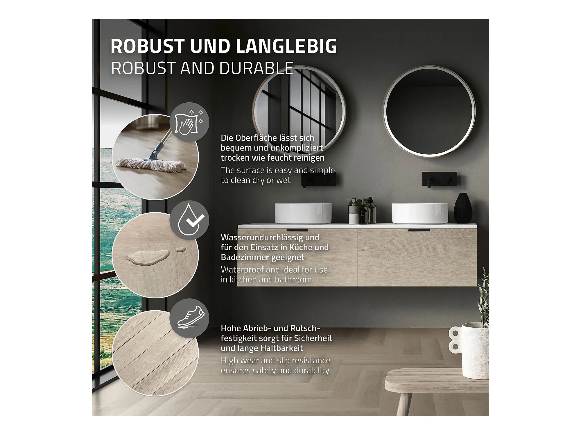 ML-Design Suelo vinílico de PVC 6.24m² color marrón roble claro 100x planchas sistema de click 61x12,8cm láminas grosor 4,2mm efecto madera