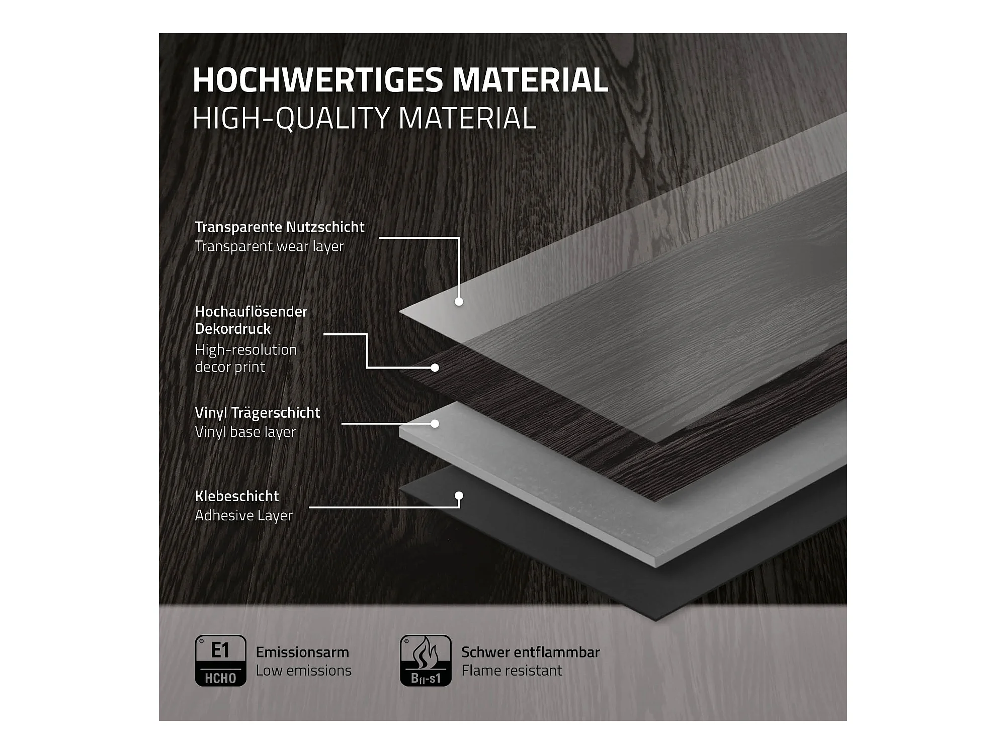 ML-Design Suelo vinílico de PVC 6,69m² color roble gris oscuro planchas sistema autoadhesivo 91,5x15,3cm láminas grosor 2 mm efecto madera