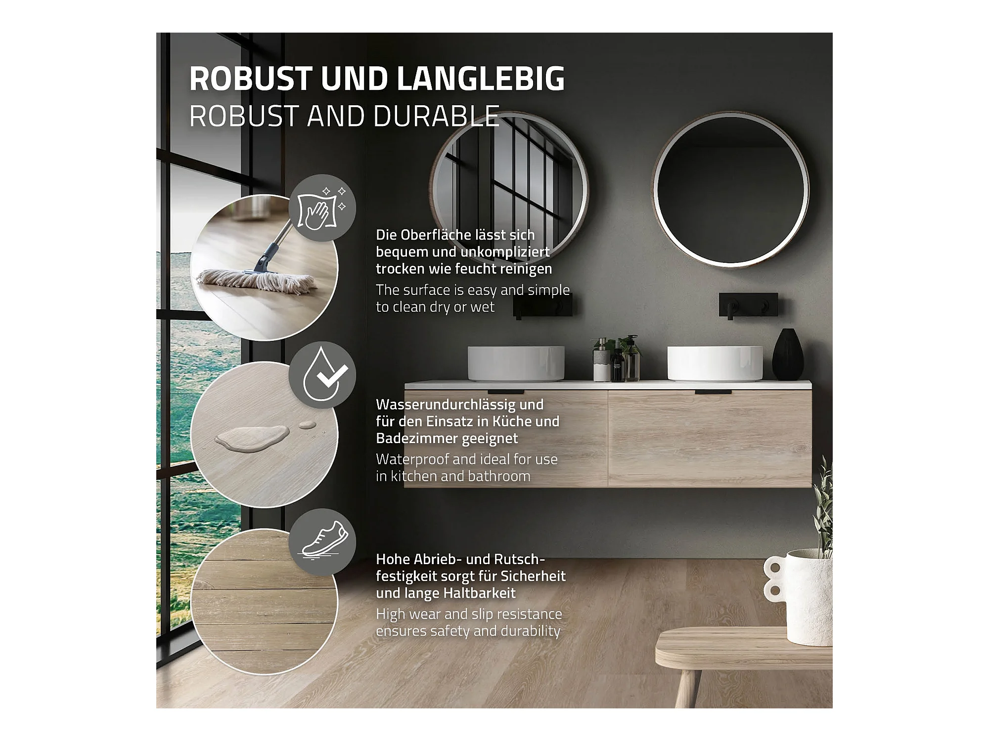 ML-Design Suelo vinílico de PVC 7,7m² color marrón afterglow 35x planchas sistema de click 122x18 cm láminas grosor 4,2mm efecto madera impermeable