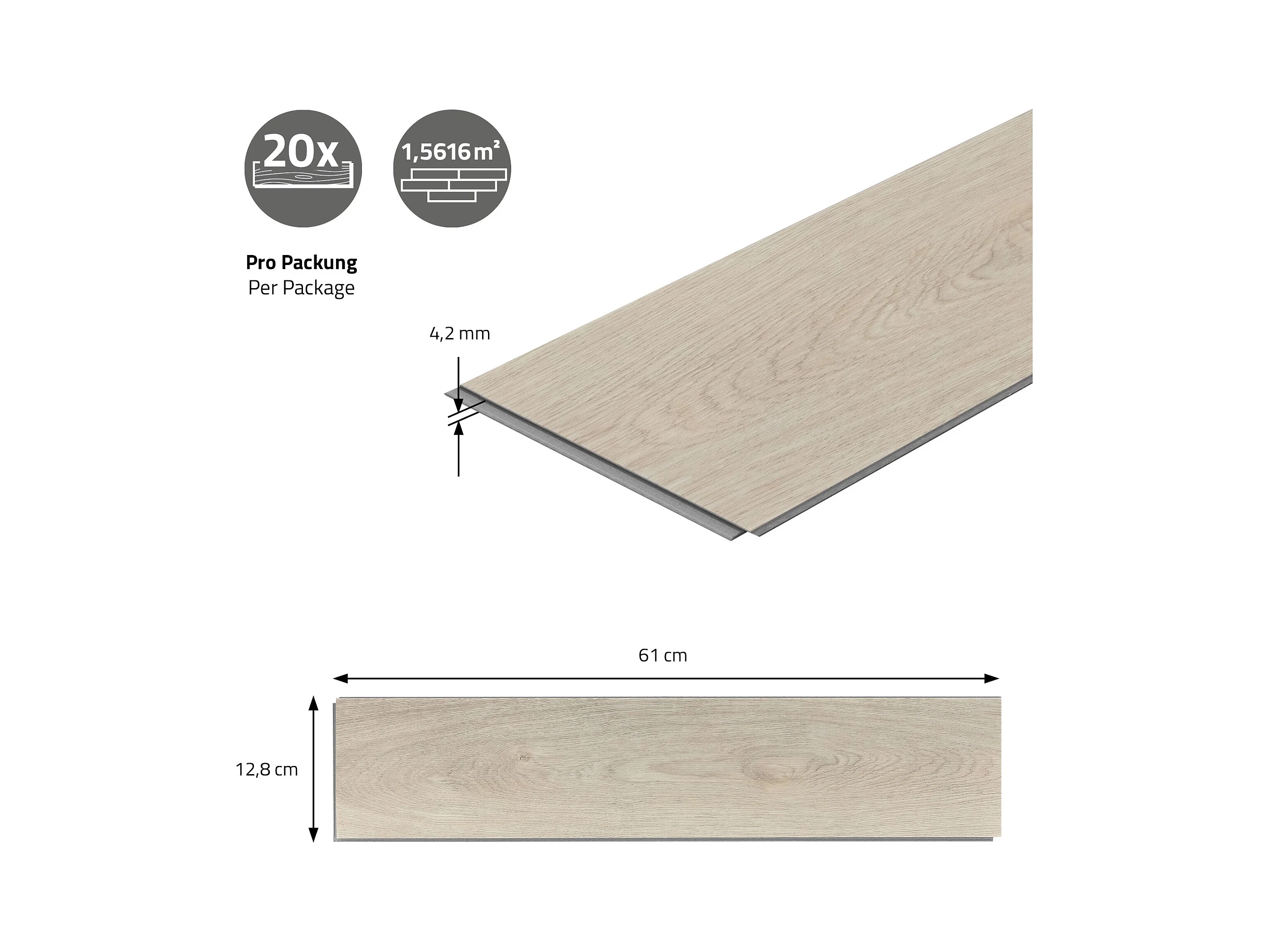 ML-Design Suelo vinílico de PVC 7.8m² color marrón roble claro 100x planchas sistema de click 61x12,8cm láminas grosor 4,2mm efecto madera