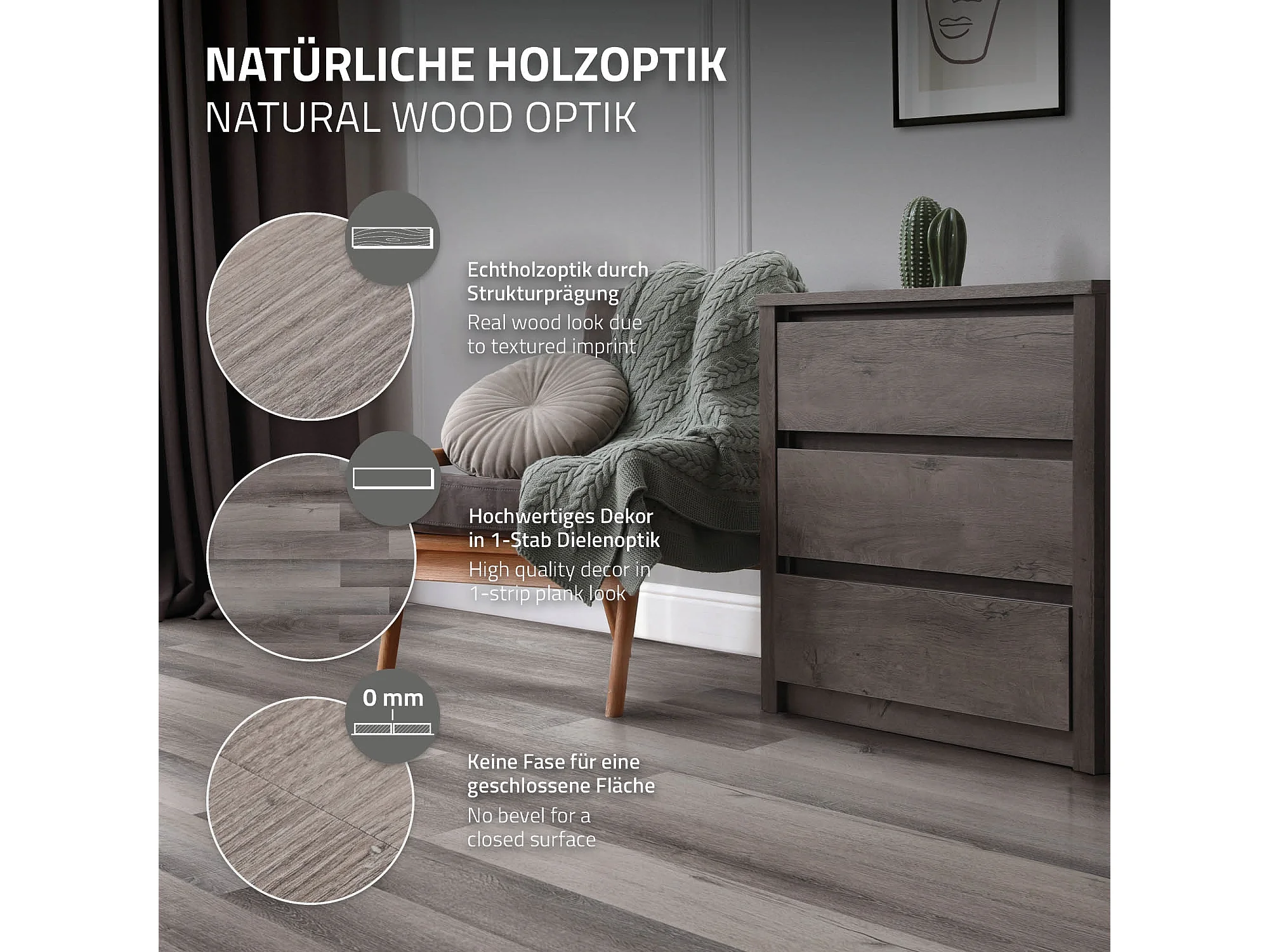 ML-Design Suelo vinílico de PVC 8,92 m² color pino gris 64x planchas autoadhesivas 91,5x15,3cm láminas grosor 2 mm efecto madera antideslizante