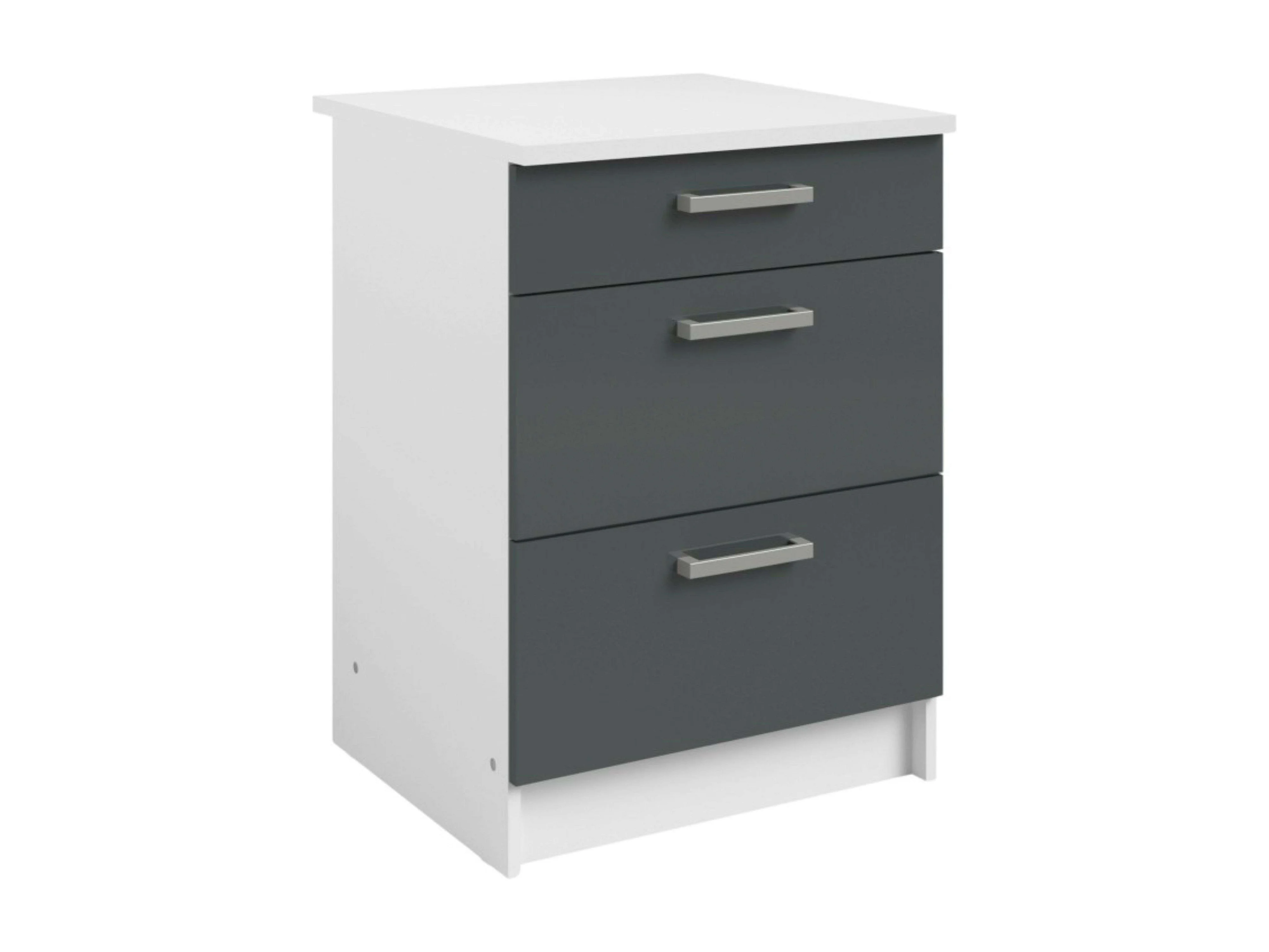 Módulo bajo cocina Vetro 3 cajones 84x60x60 cm con encimera blanca