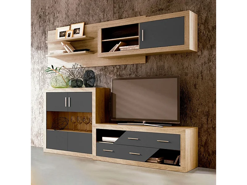 Módulo alto Nuka 1 puerta con respaldo Cambria - Grafito