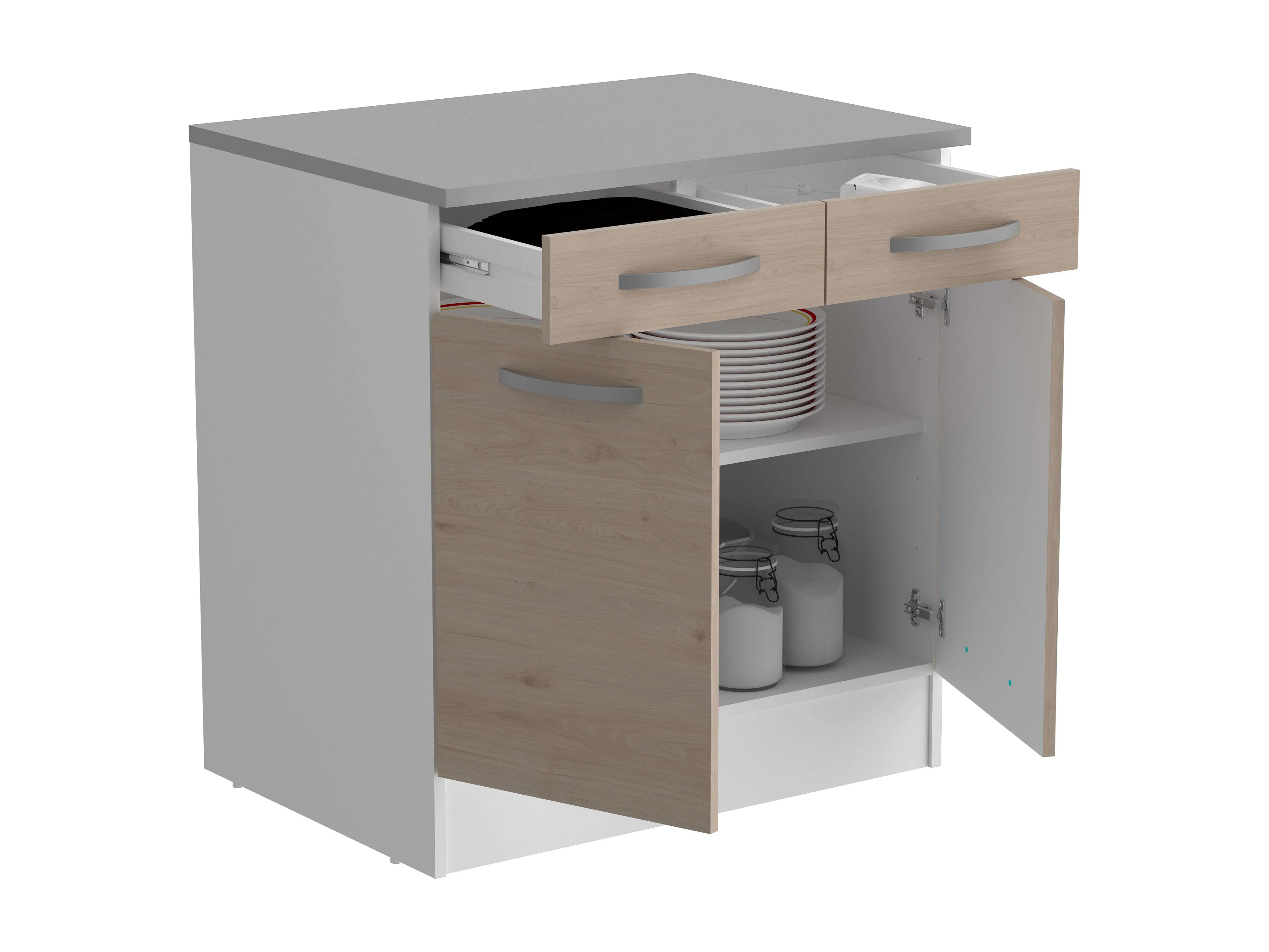 Módulo Cocina Inferior Eko 2 Puertas 2 Cajones Roble Jackson Blanco 80x60cm