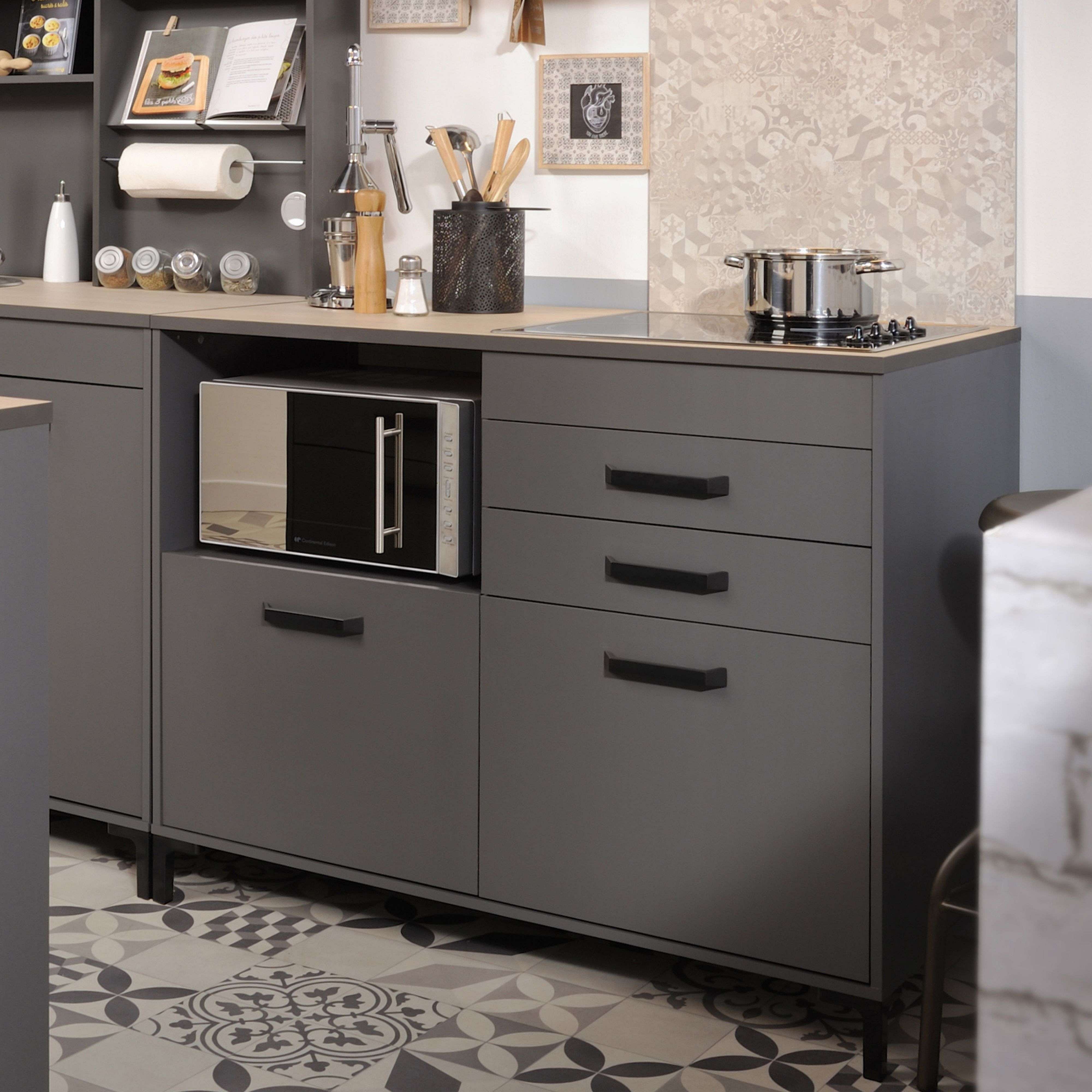 Módulo Cocina Smoke Estilo Industrial Gris Roble 2 Cajones 2 Puertas 118 cm