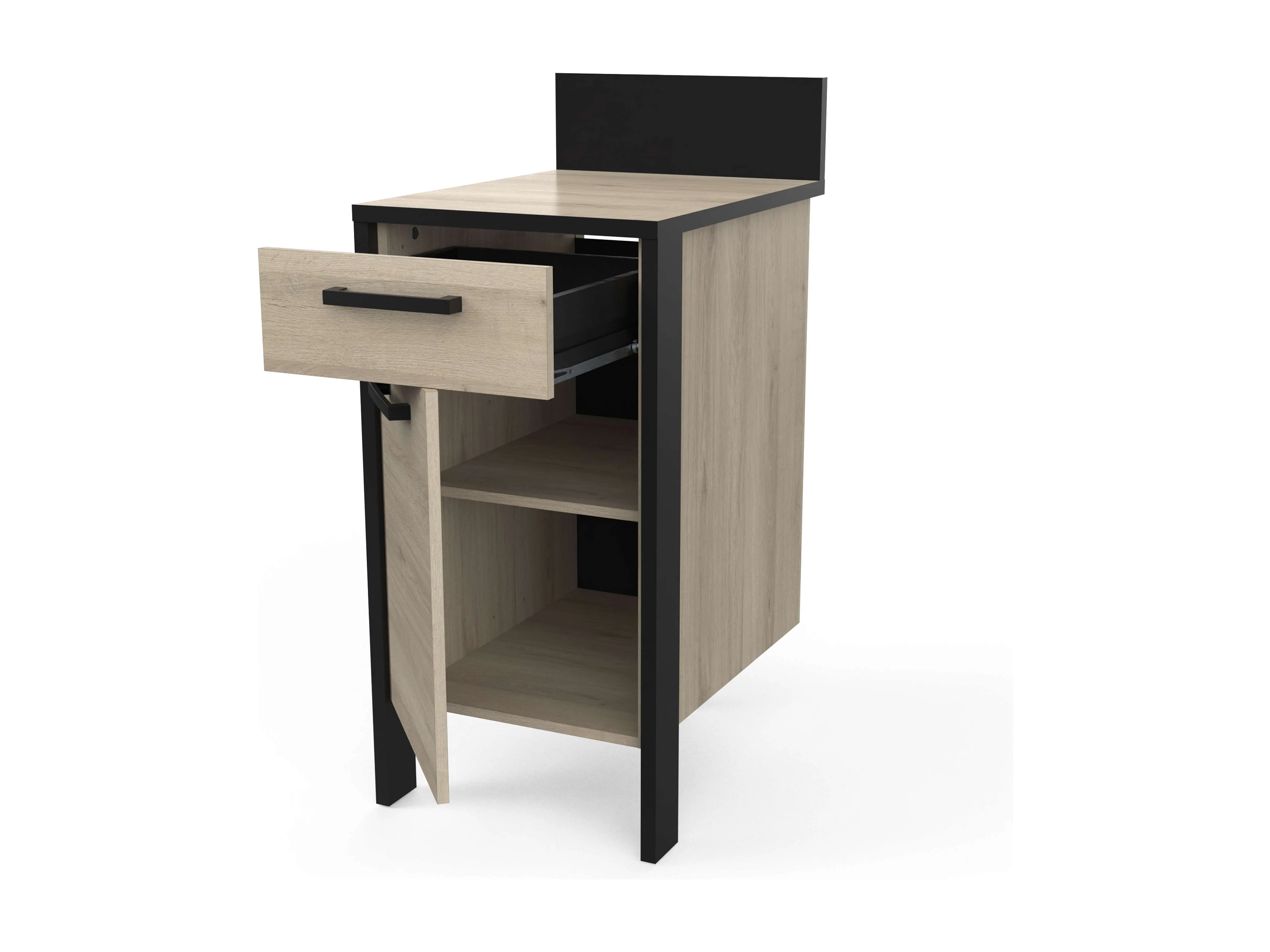 Módulo Inferior Cocina Industrial Etilo, Roble/Negro, 1 Puerta 44 cm