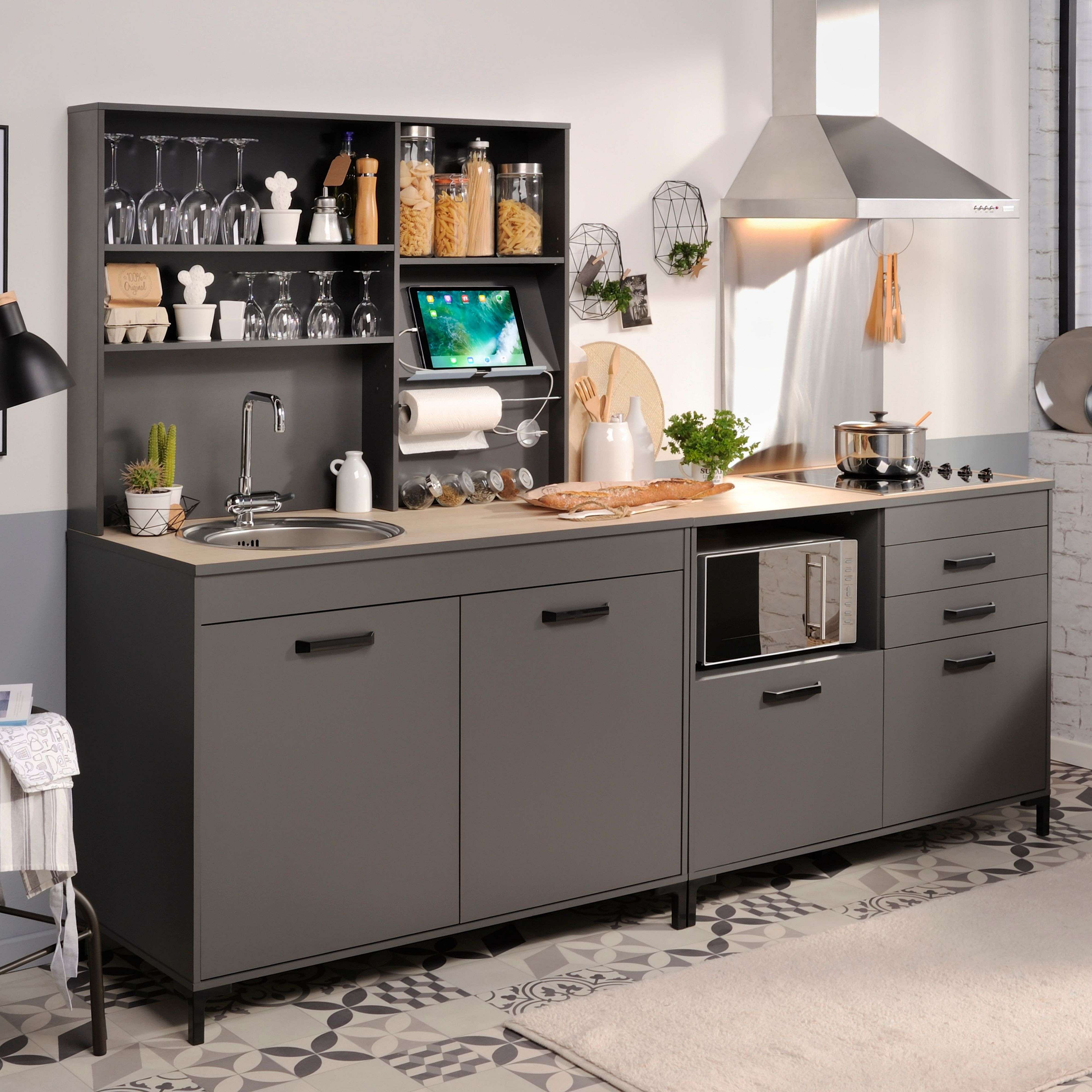 Módulo Inferior Cocina Smoke Industrial Gris y Roble 2 Puertas 118 cm