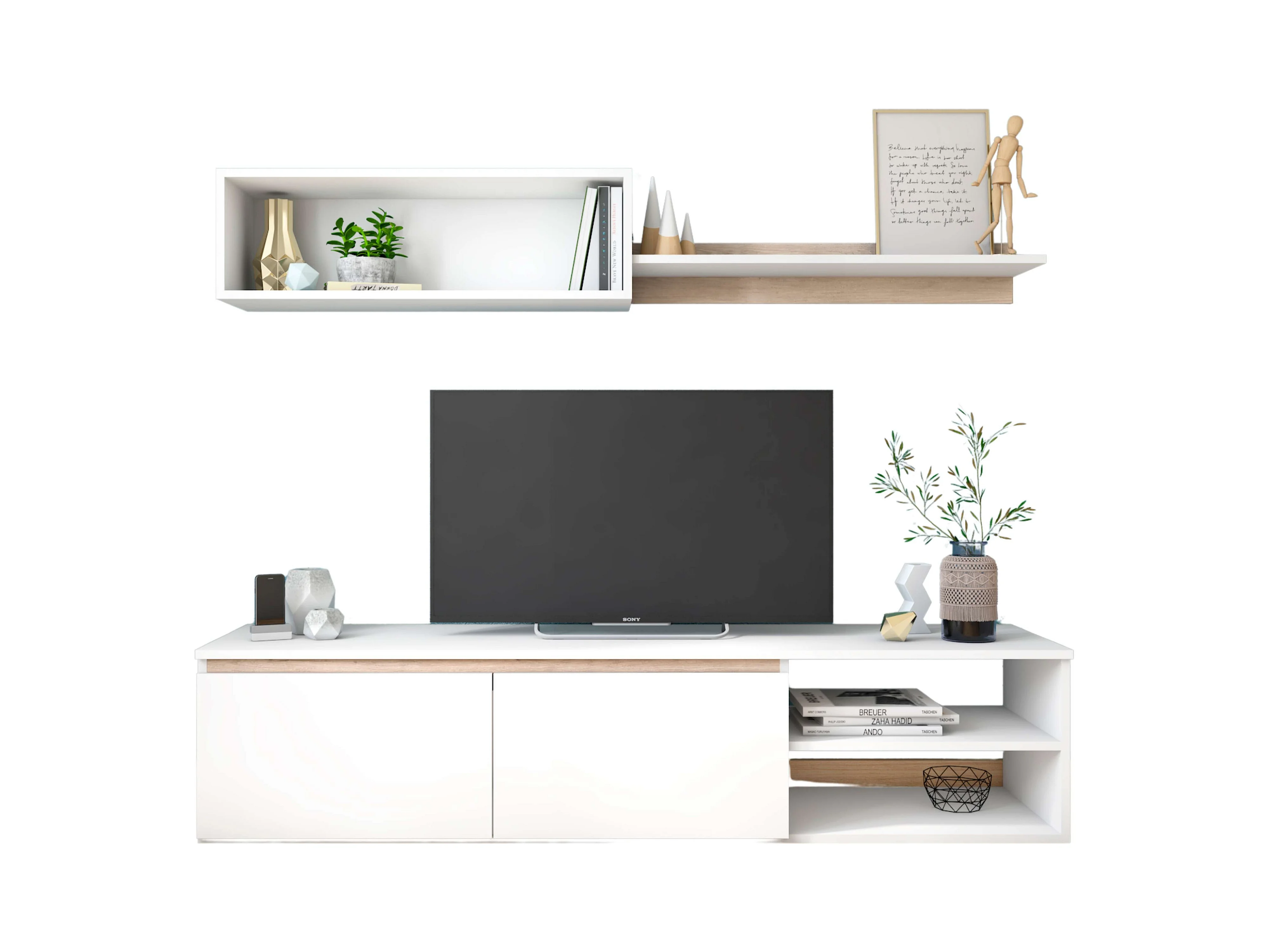 Modulo TV Salón Comedor Nórdico Blanco Mate y Roble Sahara 160 cm
