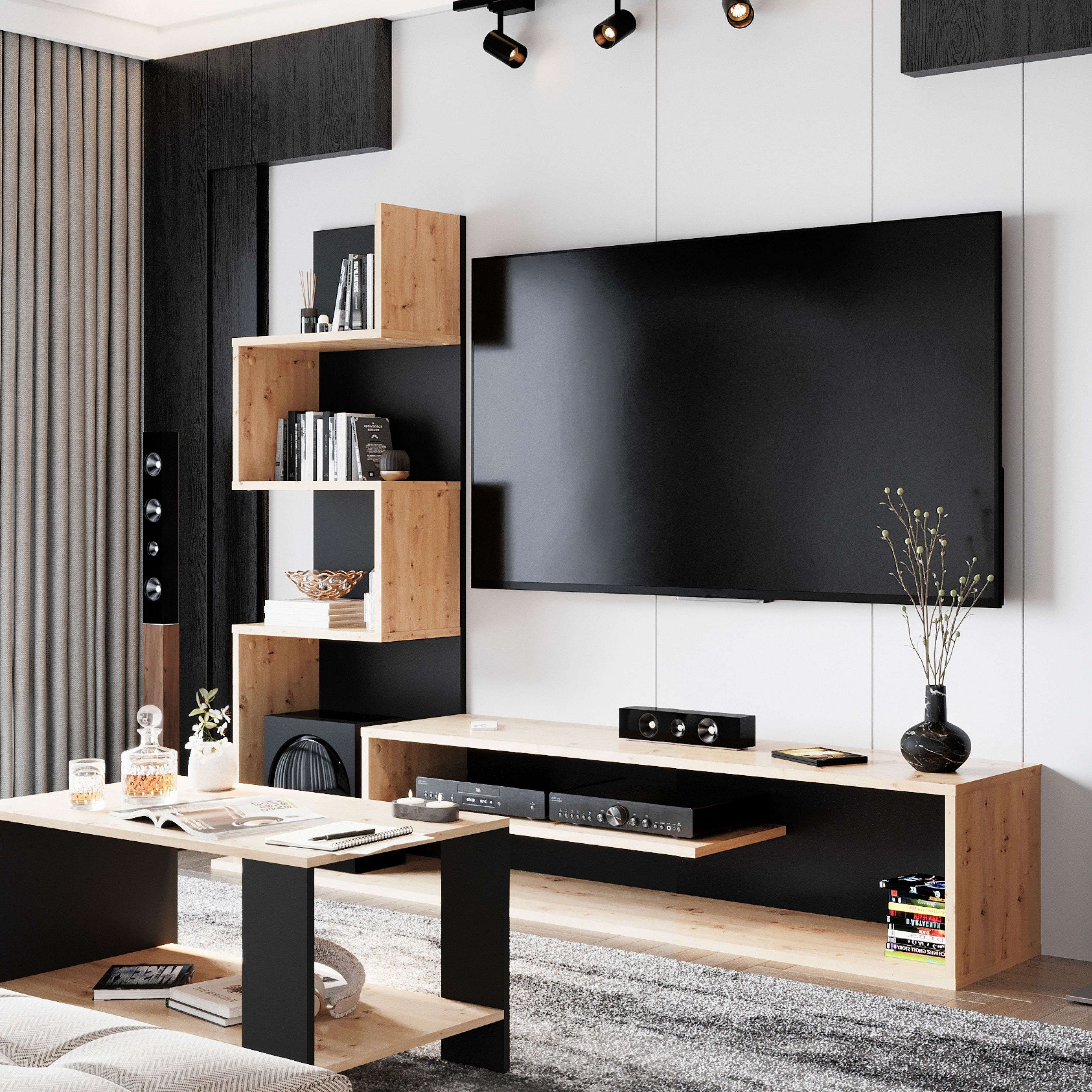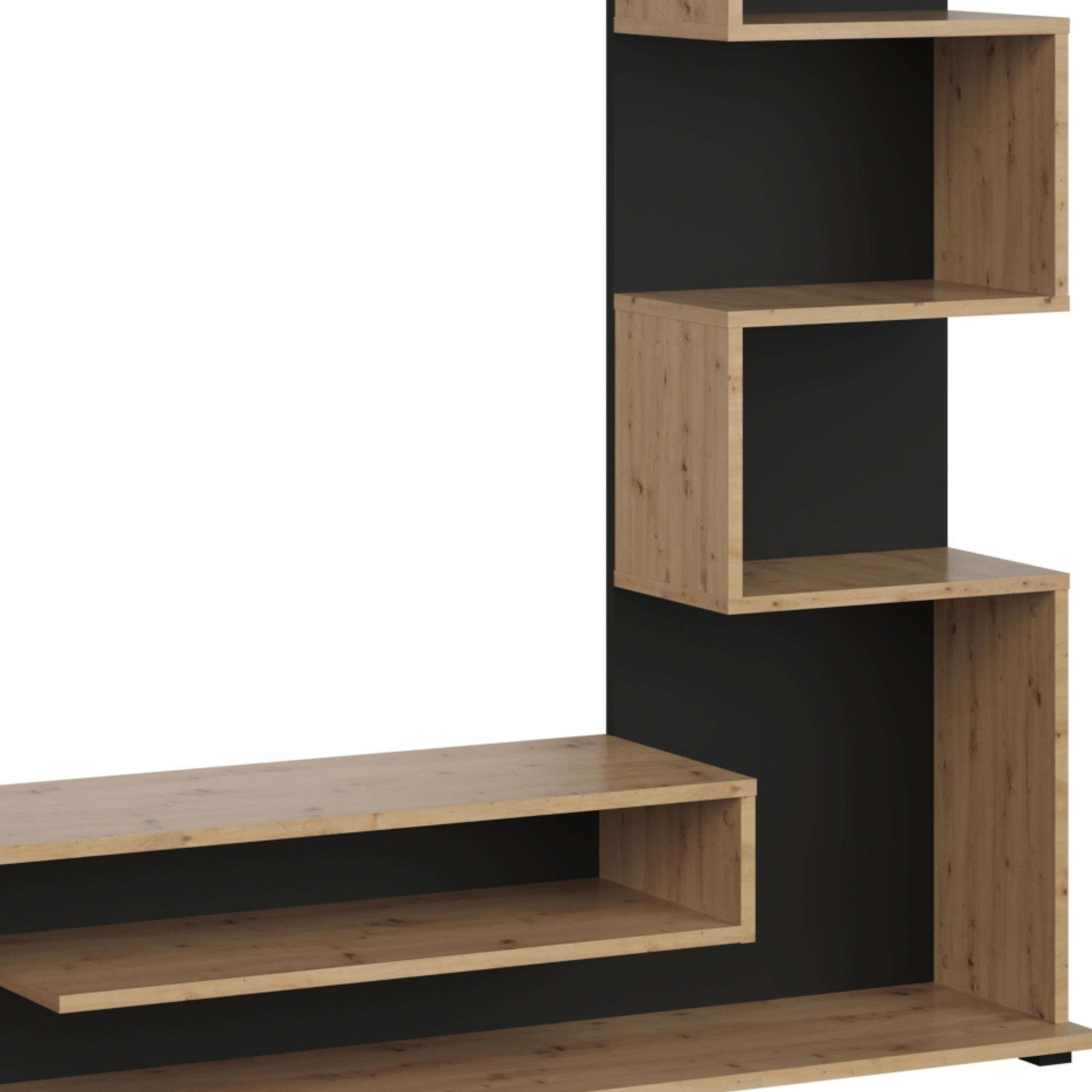 Módulo TV Snake Estilo Industrial Roble Artisan/Negro 4 Estantes 160x130x29 cm