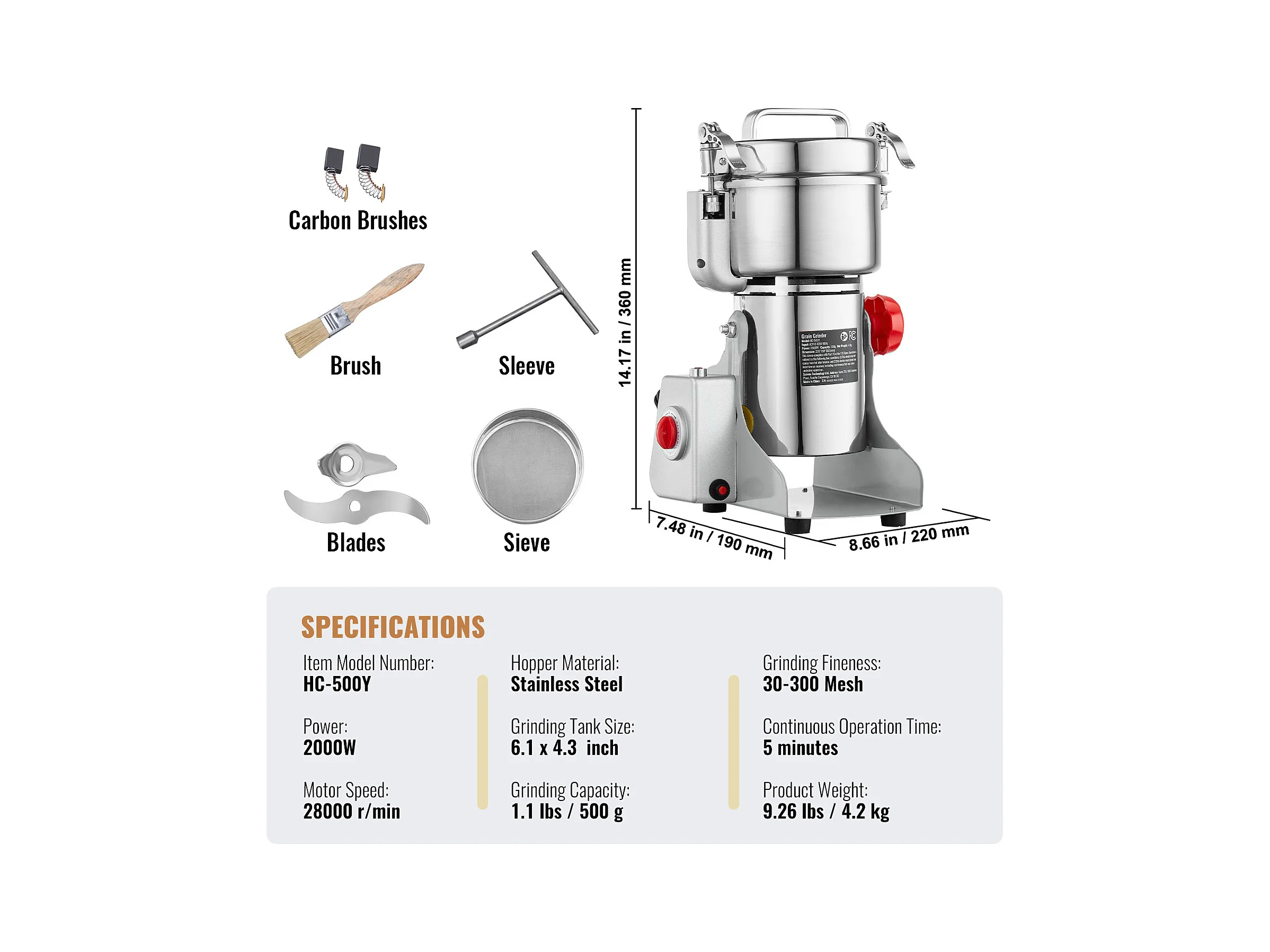 Molinillo SucceBuy Molino Eléctrico para Granos 500 g, Molino Comercial de Especias a Alta Velocidad
