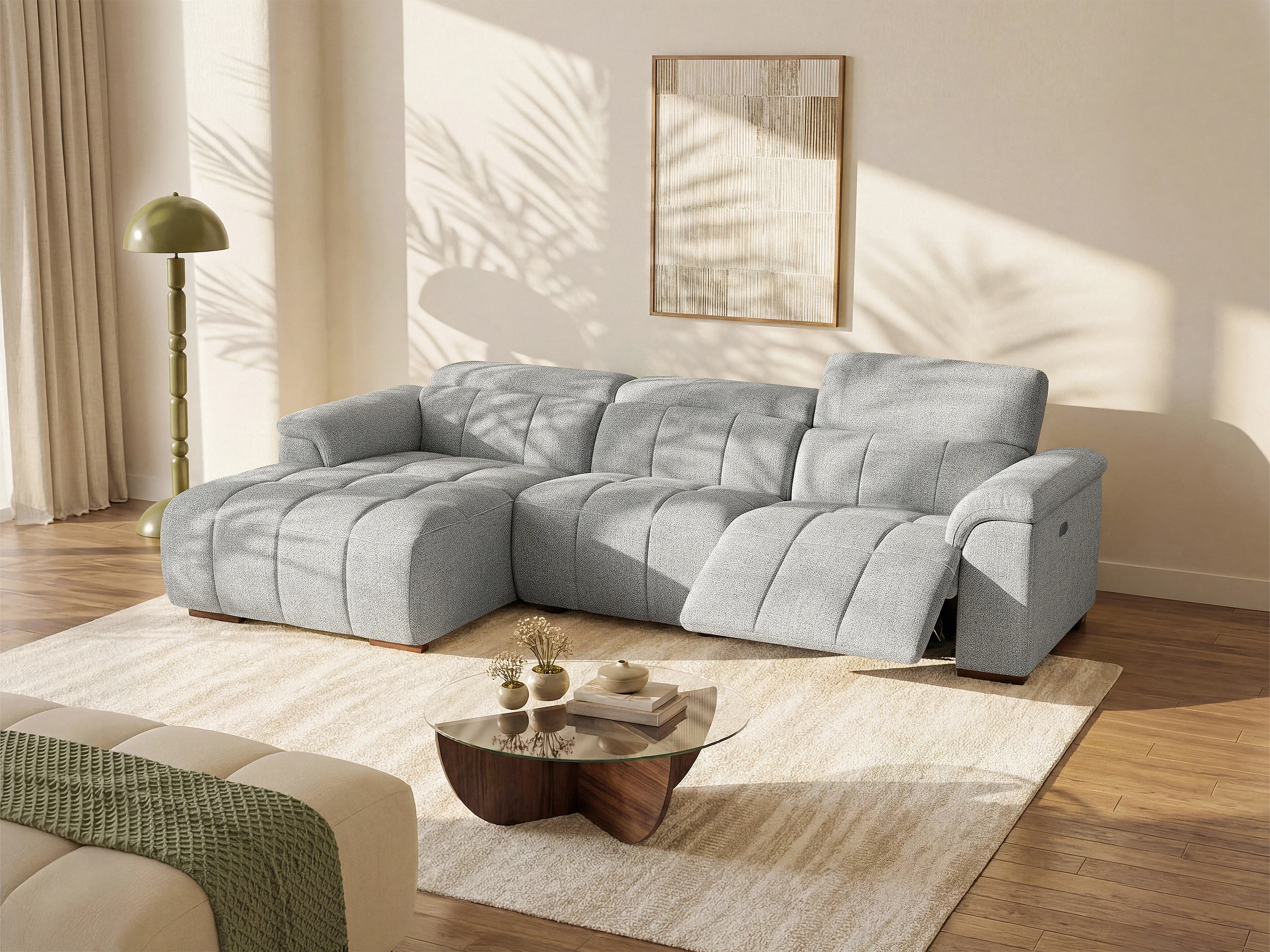 Sofá rinconera izquierda relax eléctrico de tela gris claro MOLPICA