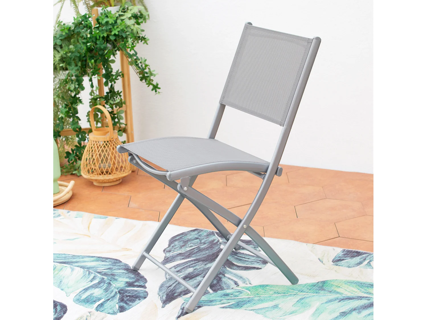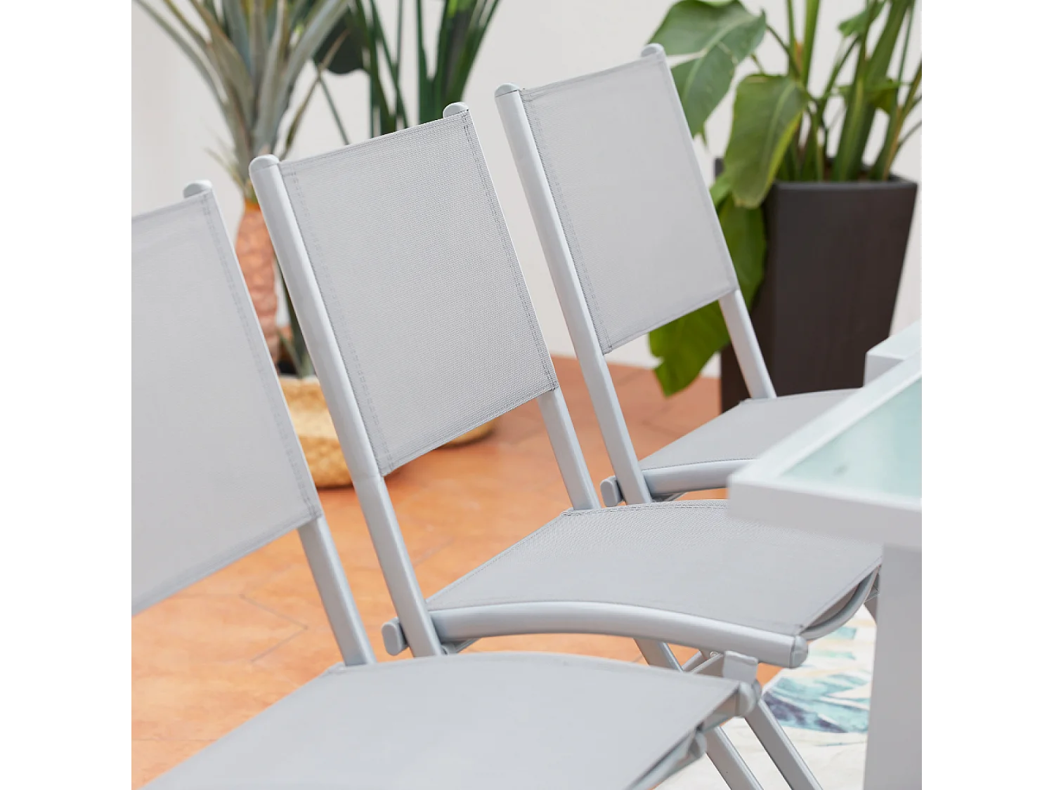 Juego de 4 Sillas de jardín plegables acero y textileno gris melange ES287143
