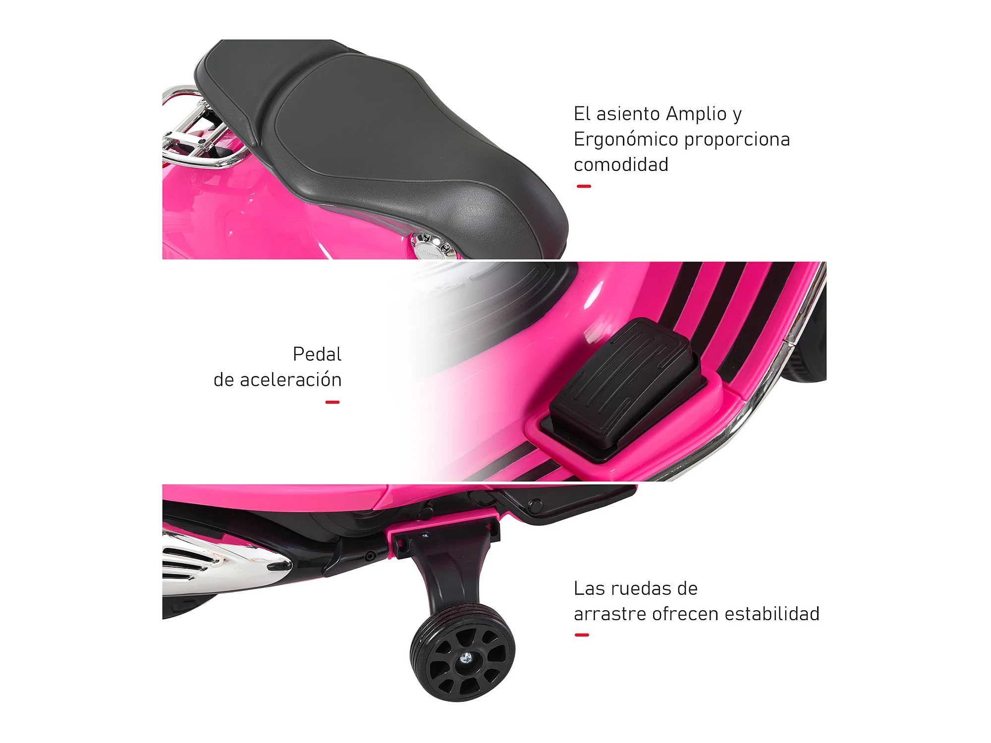 Moto eléctrica para niños rosa 66.5 x 38 x 52 cm HOMCOM