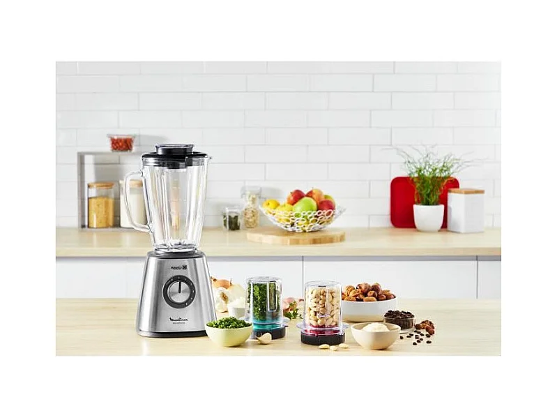 MOULINEX Batidora Batidora Batidora, Potencia 800 W, Cuchillas de Acero Inoxidable, 5 Velocidades, Vaso de Vidrio Térmico de 1,7
