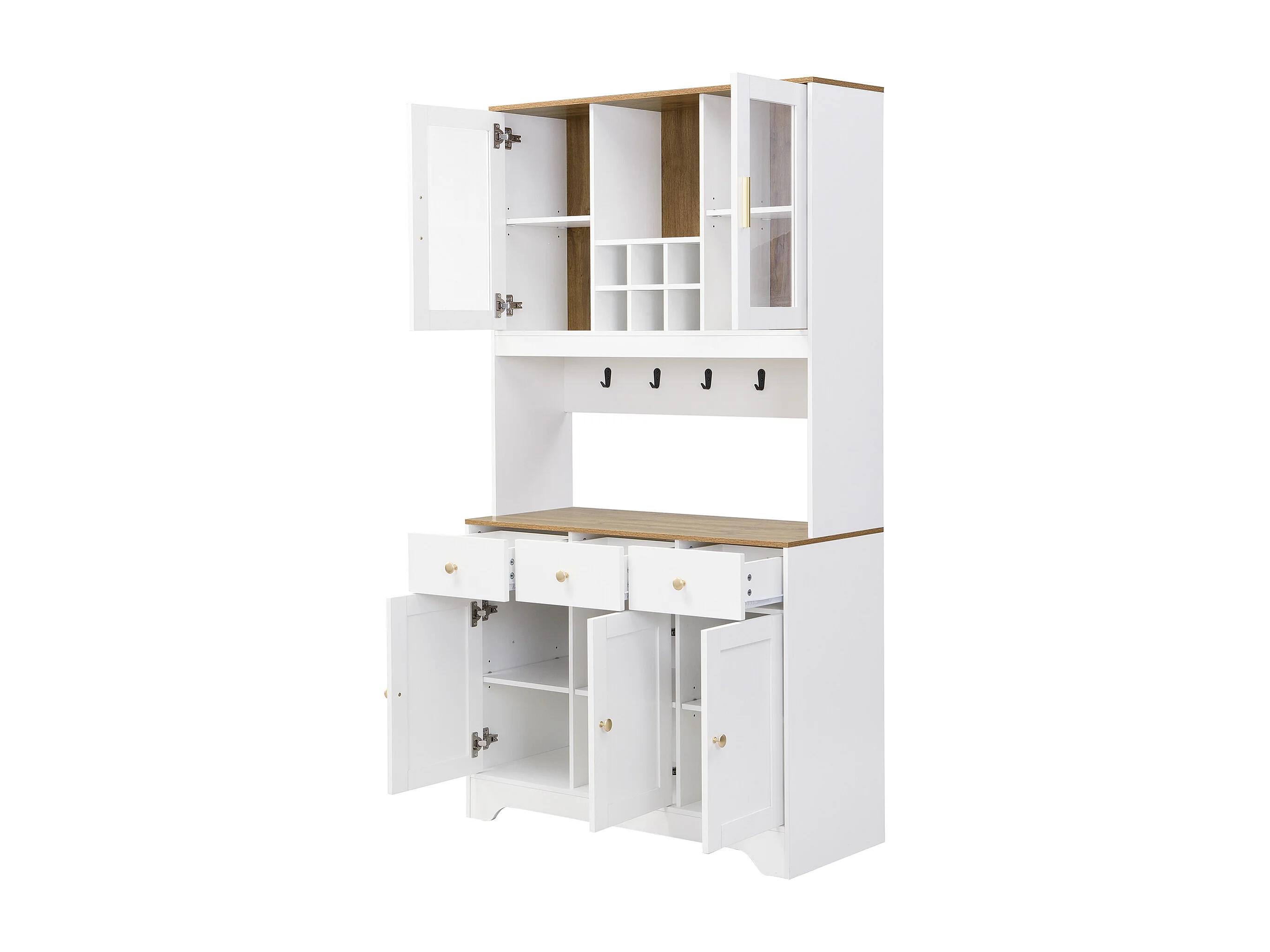 Mueble alto con puertas de cristal, acabado madera blanca y madera, diseño moderno, MDF, (94,5x30x175,5 cm)