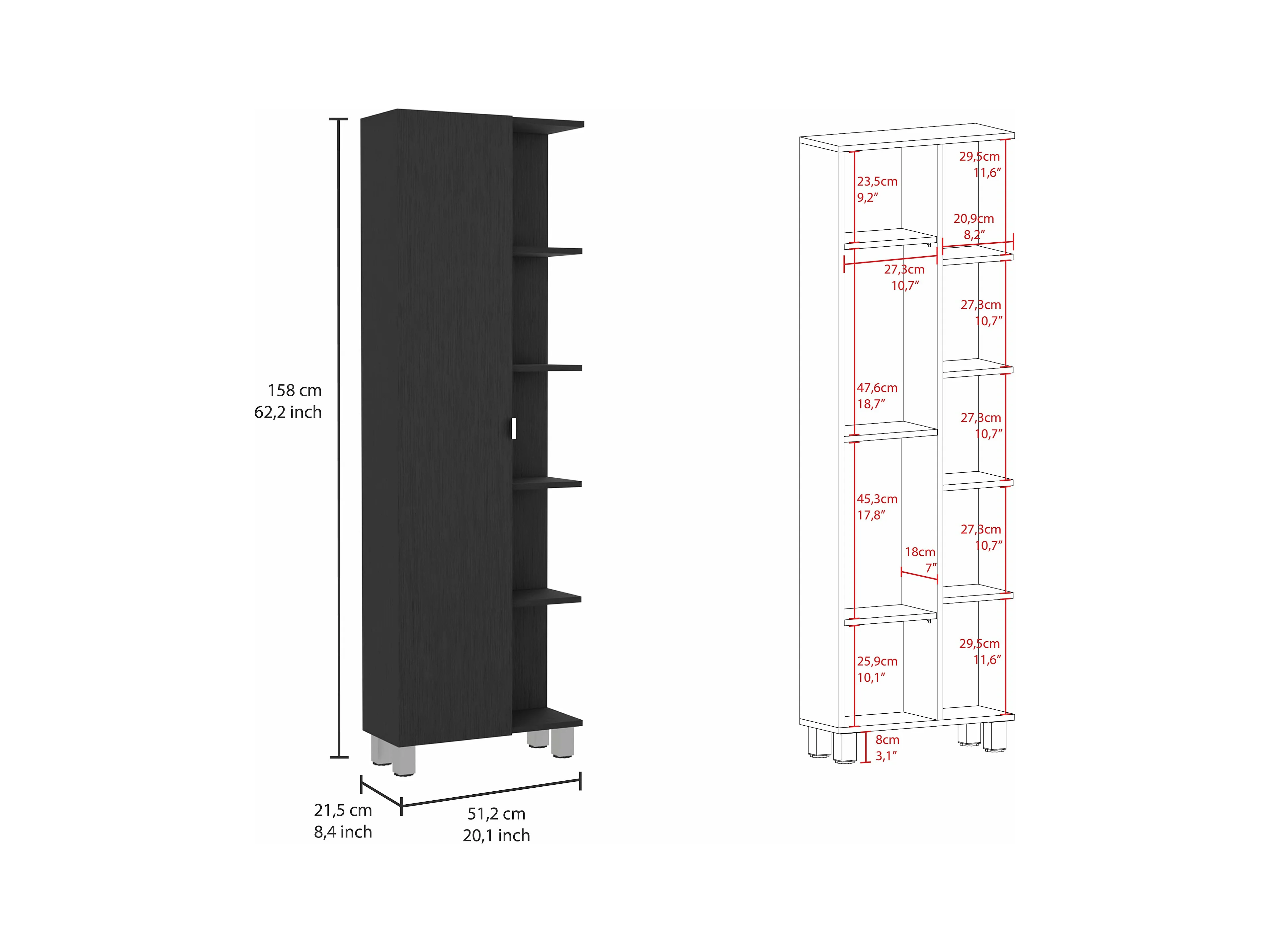 Mueble Alto de Baño Urano, con 5 estantes , 157.98 cm X 51.18 cm X 21.46 cm , Negro