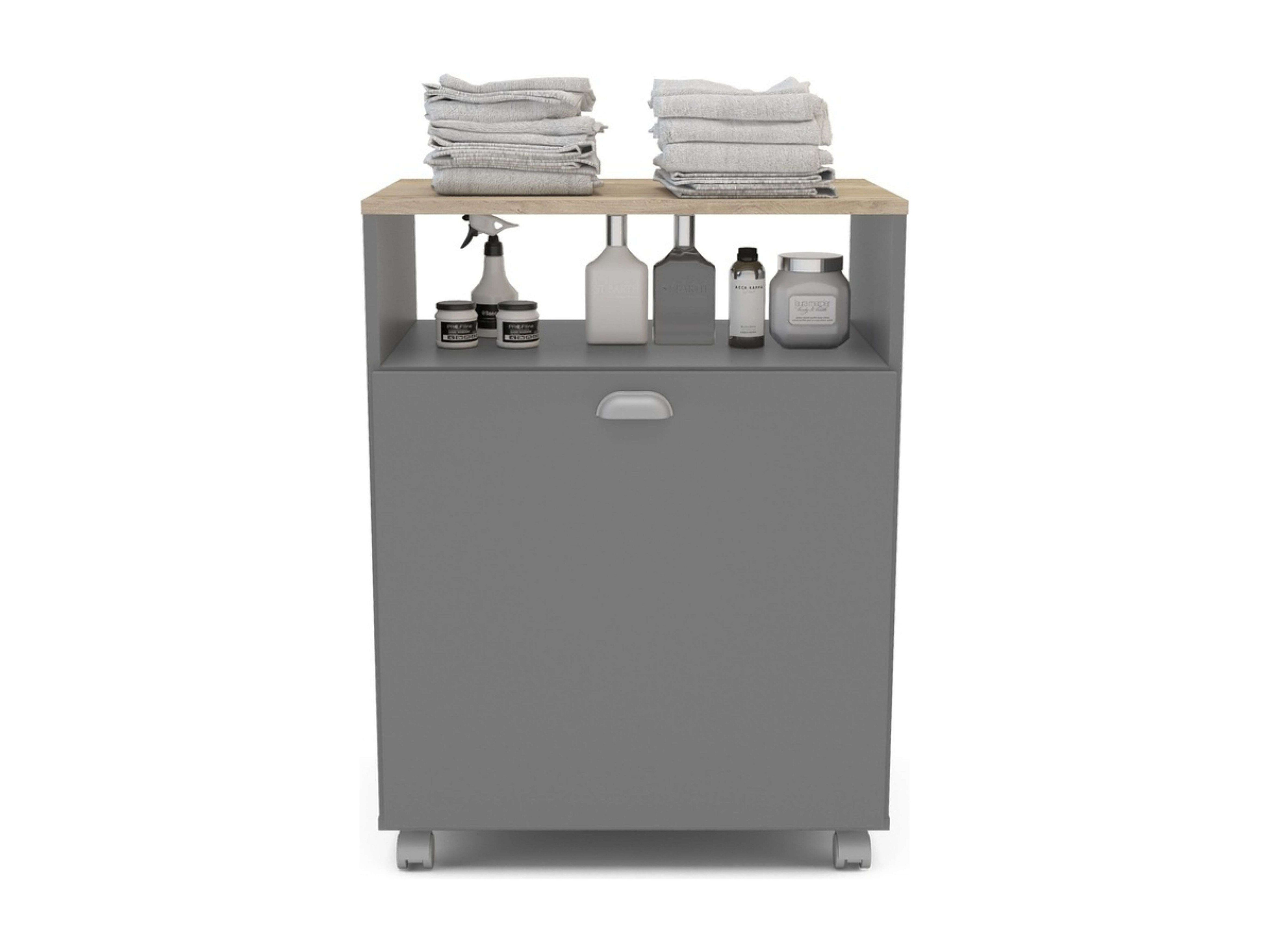 Mueble Auxiliar Lavandería Ruedas Blanco Tapa Gris 80x61 cm