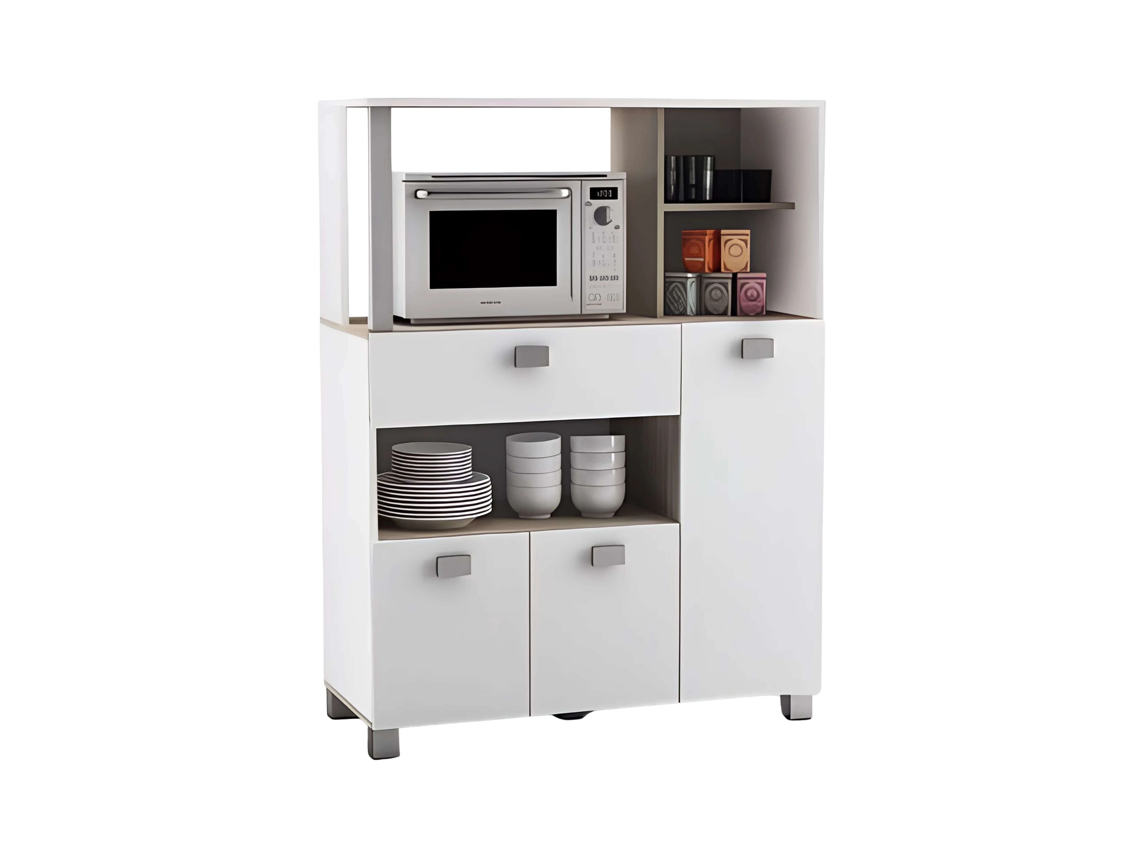 Mueble Auxiliar Cocina Blanco Mate 132x99cm con Cajones y Compartimentos