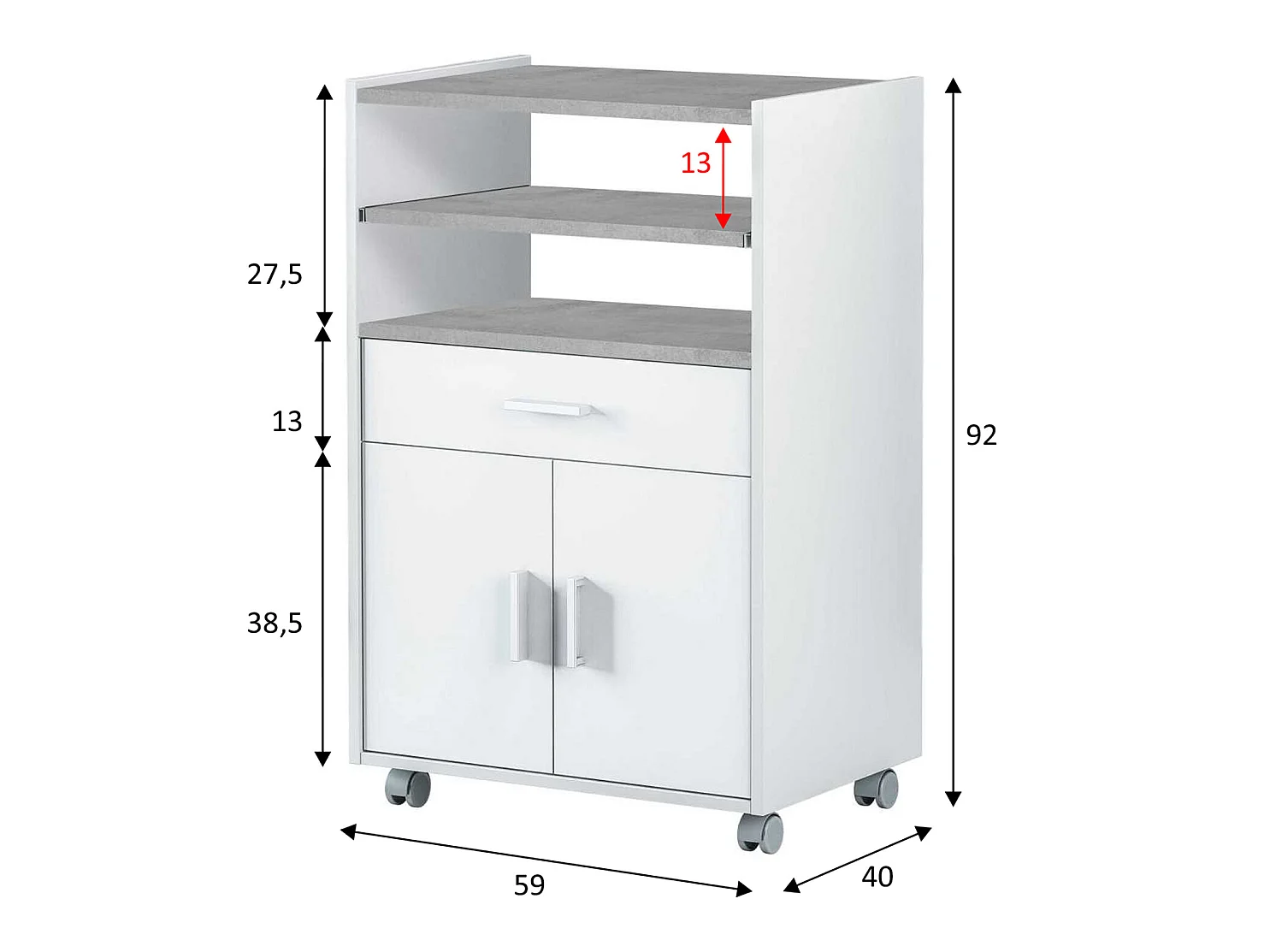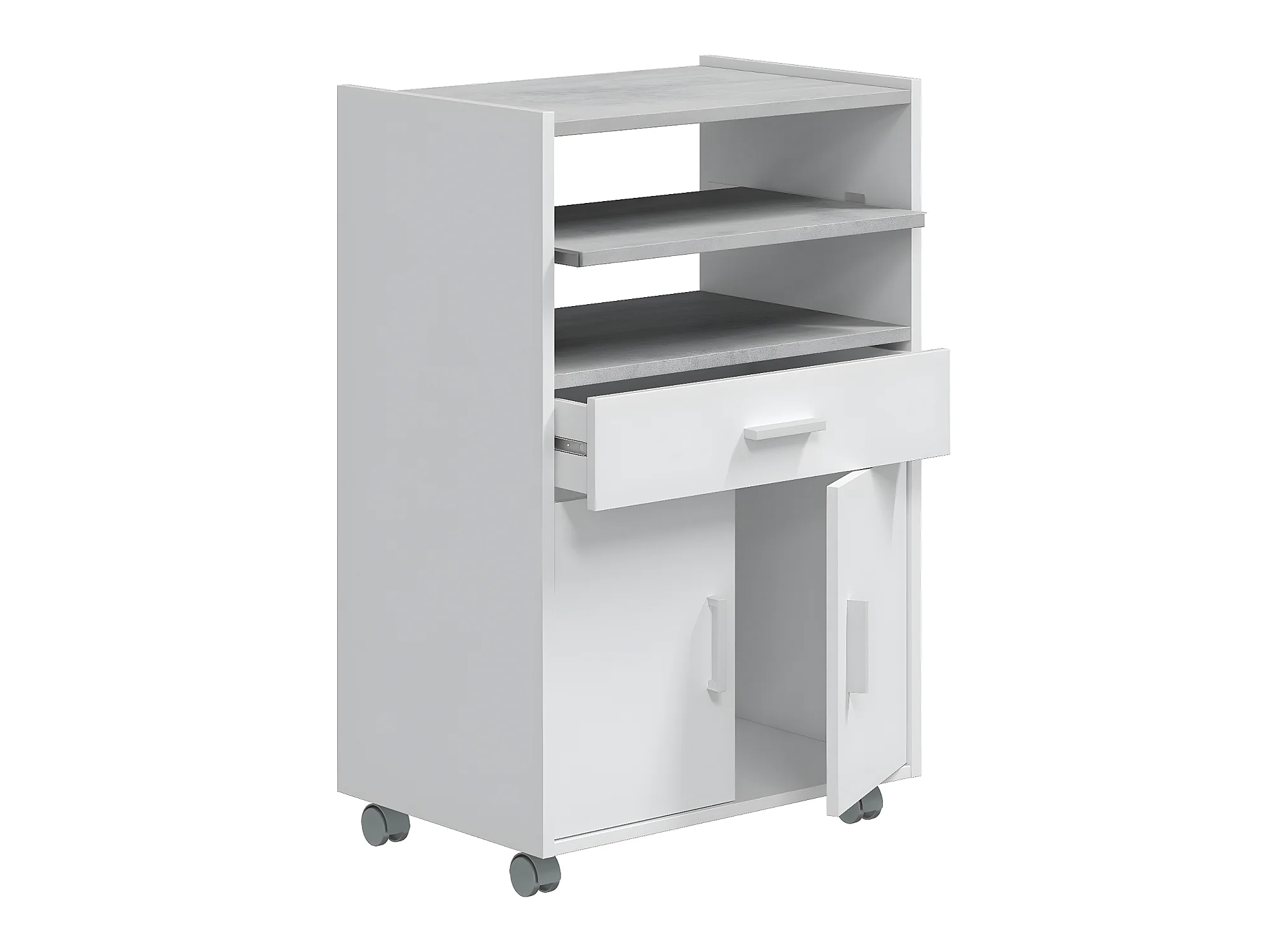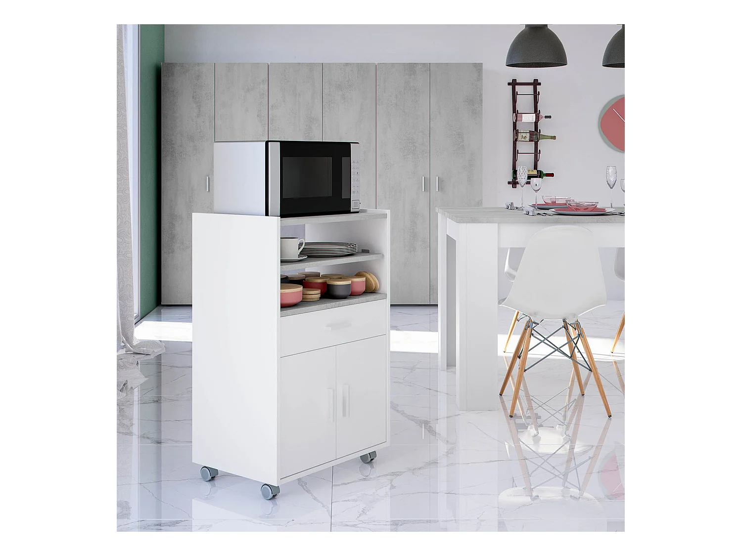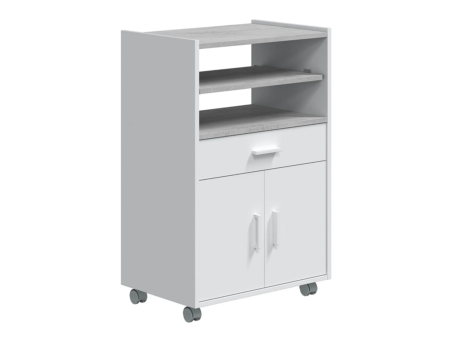 Mueble auxiliar de cocina Picazo con ruedas 1 cajón y 2 puertas, blanco/gris