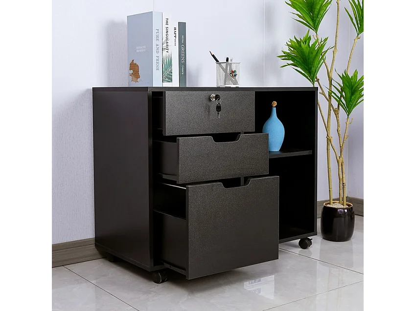 Mueble auxiliar de oficina y despacho para documentos con ruedas y cerradura Twatt - Negro