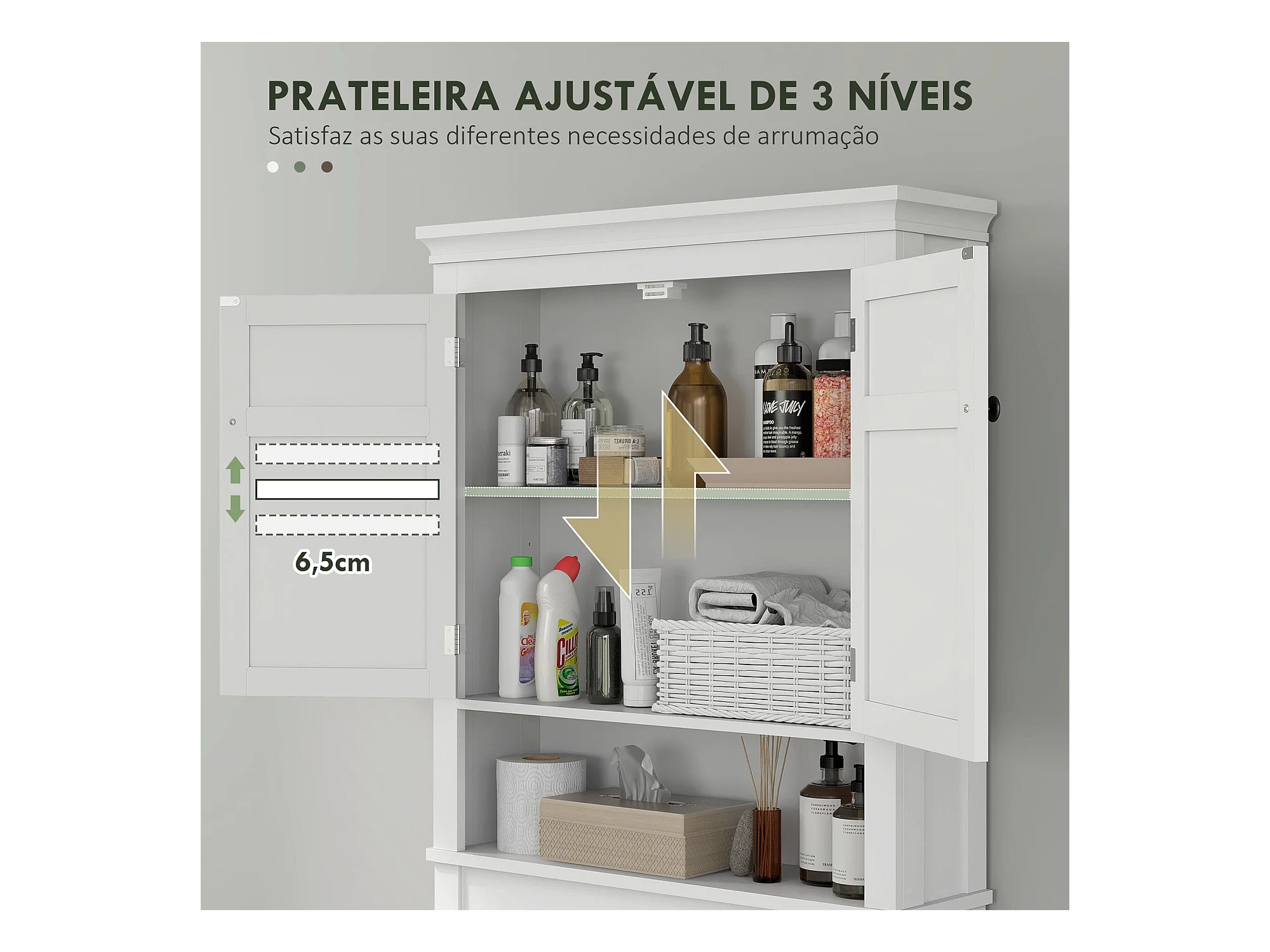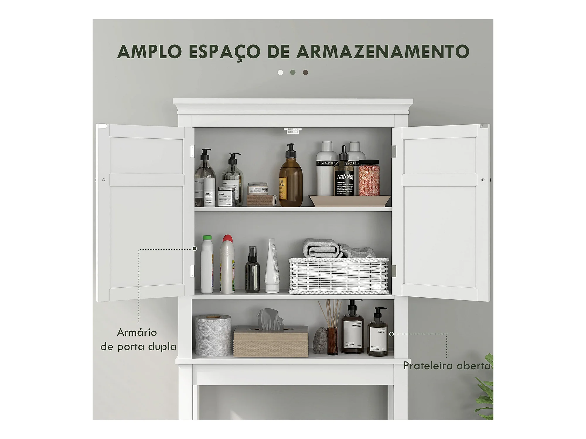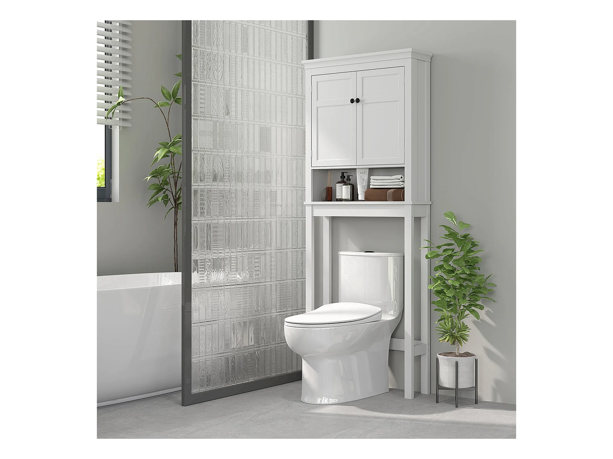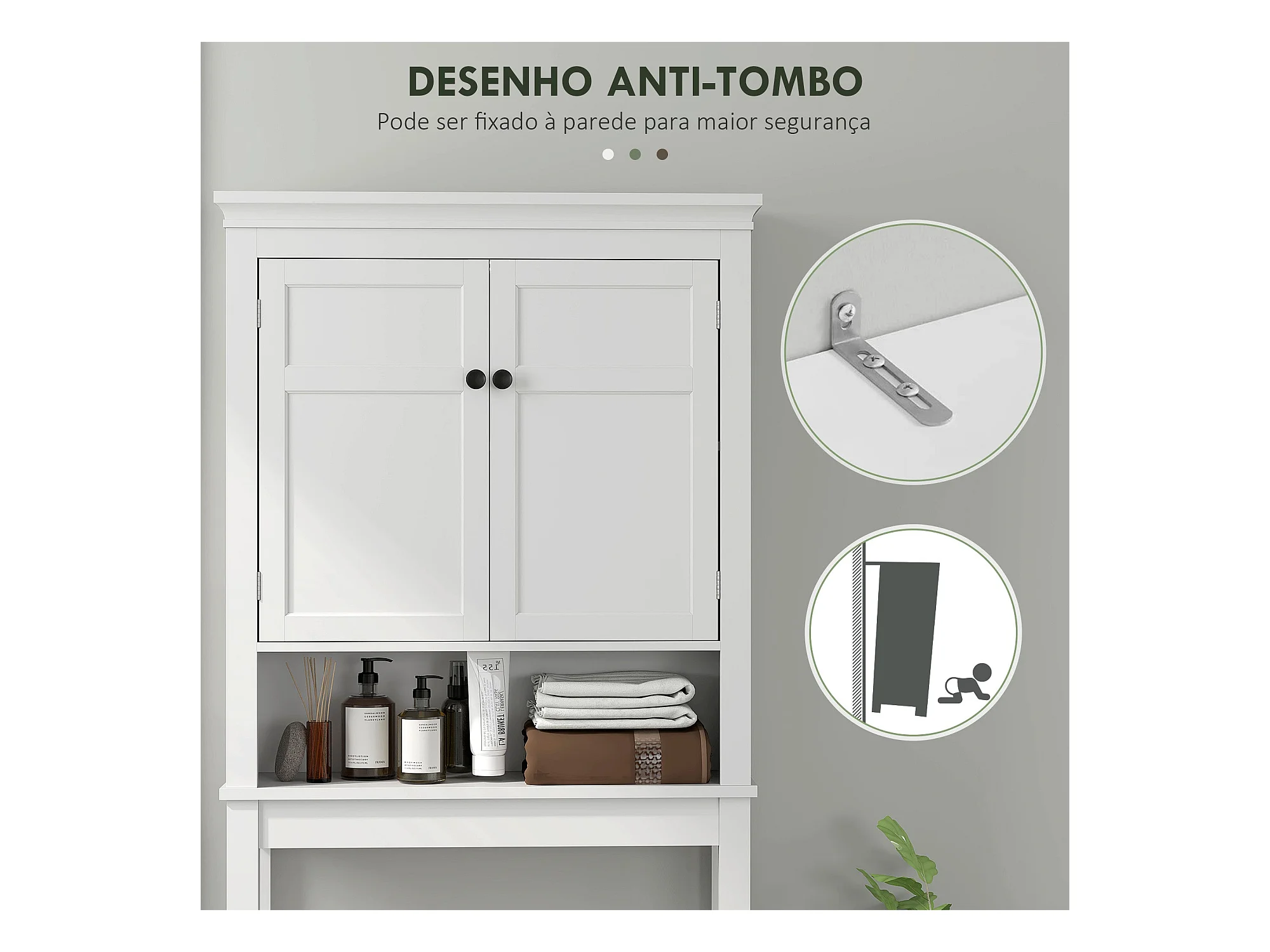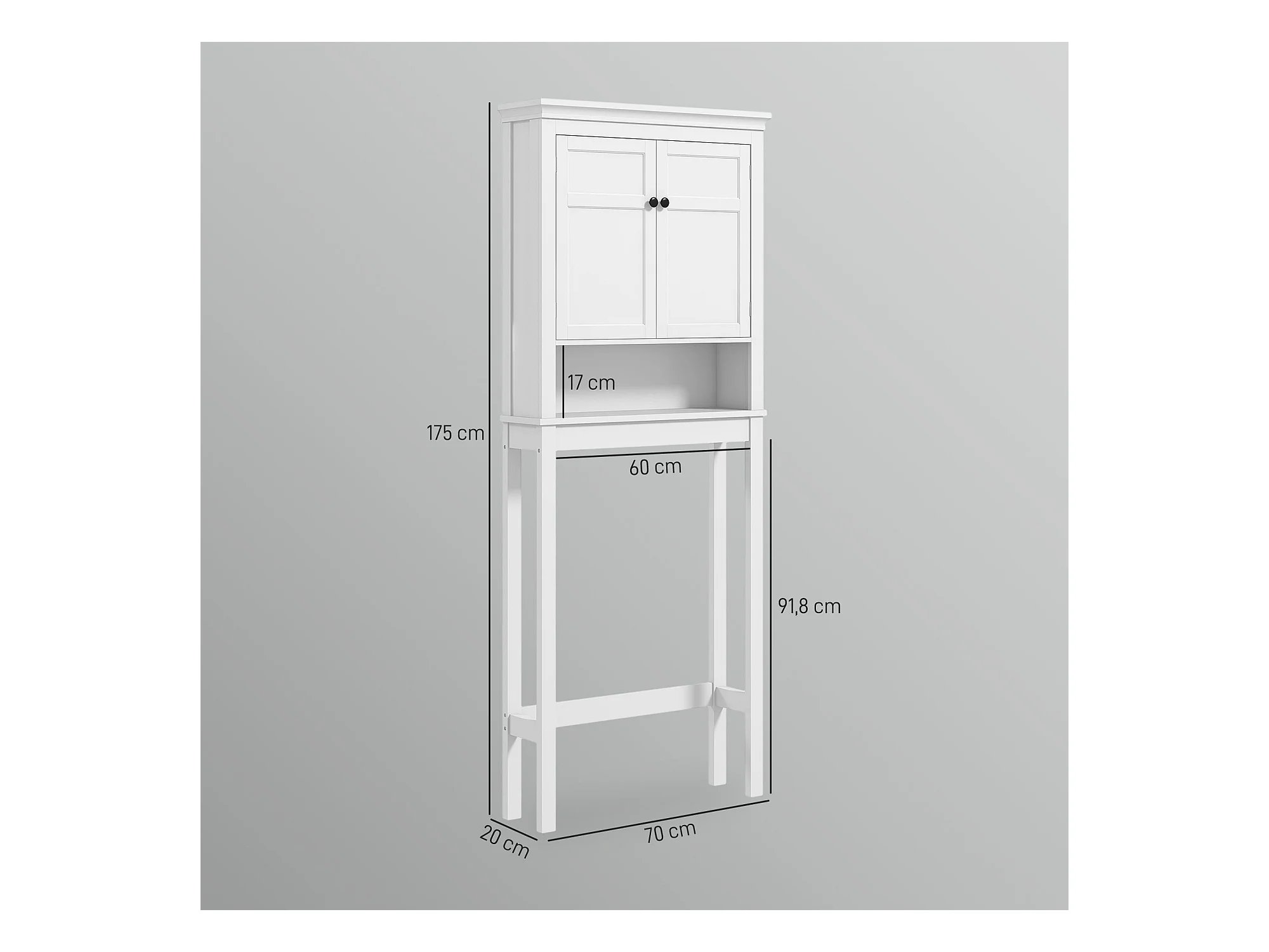 Armario de baño sobre lavadora y secadora, columna de almacenamiento de electrodomésticos en color blanco.
