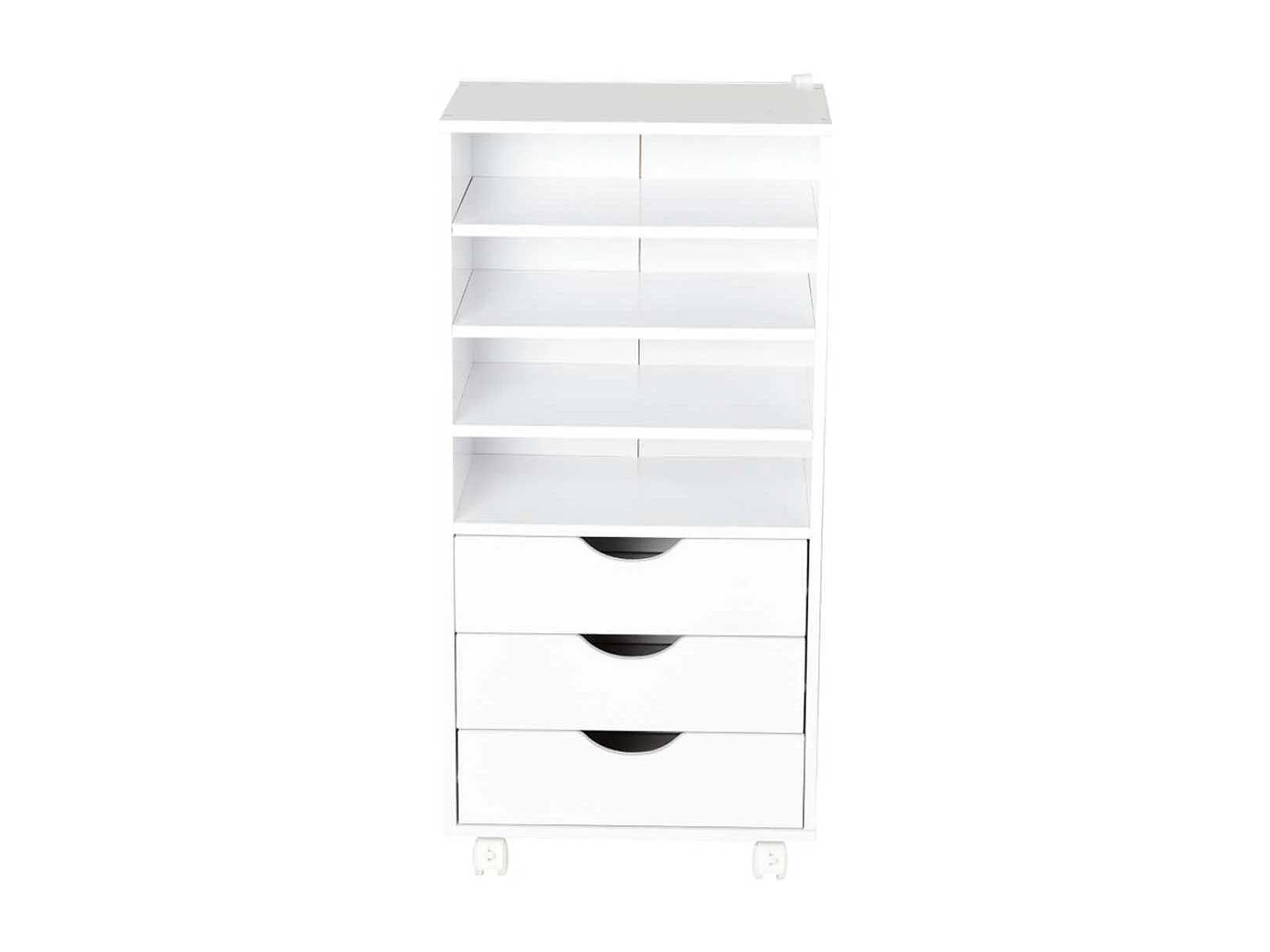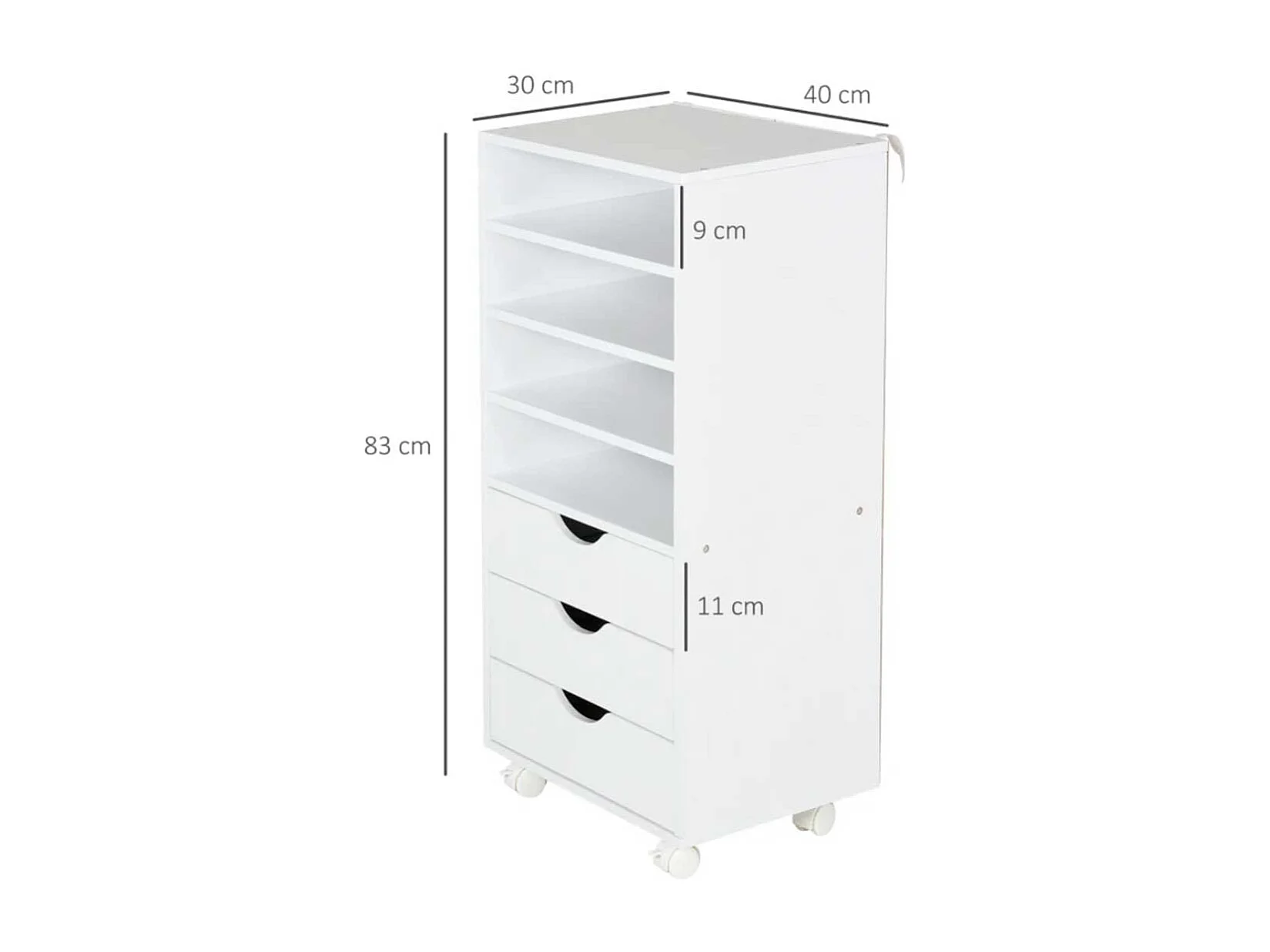 Mueble auxiliar Vinsetto 3 cajones + 4 estantes + ruedas blanco 83x40x30 cm