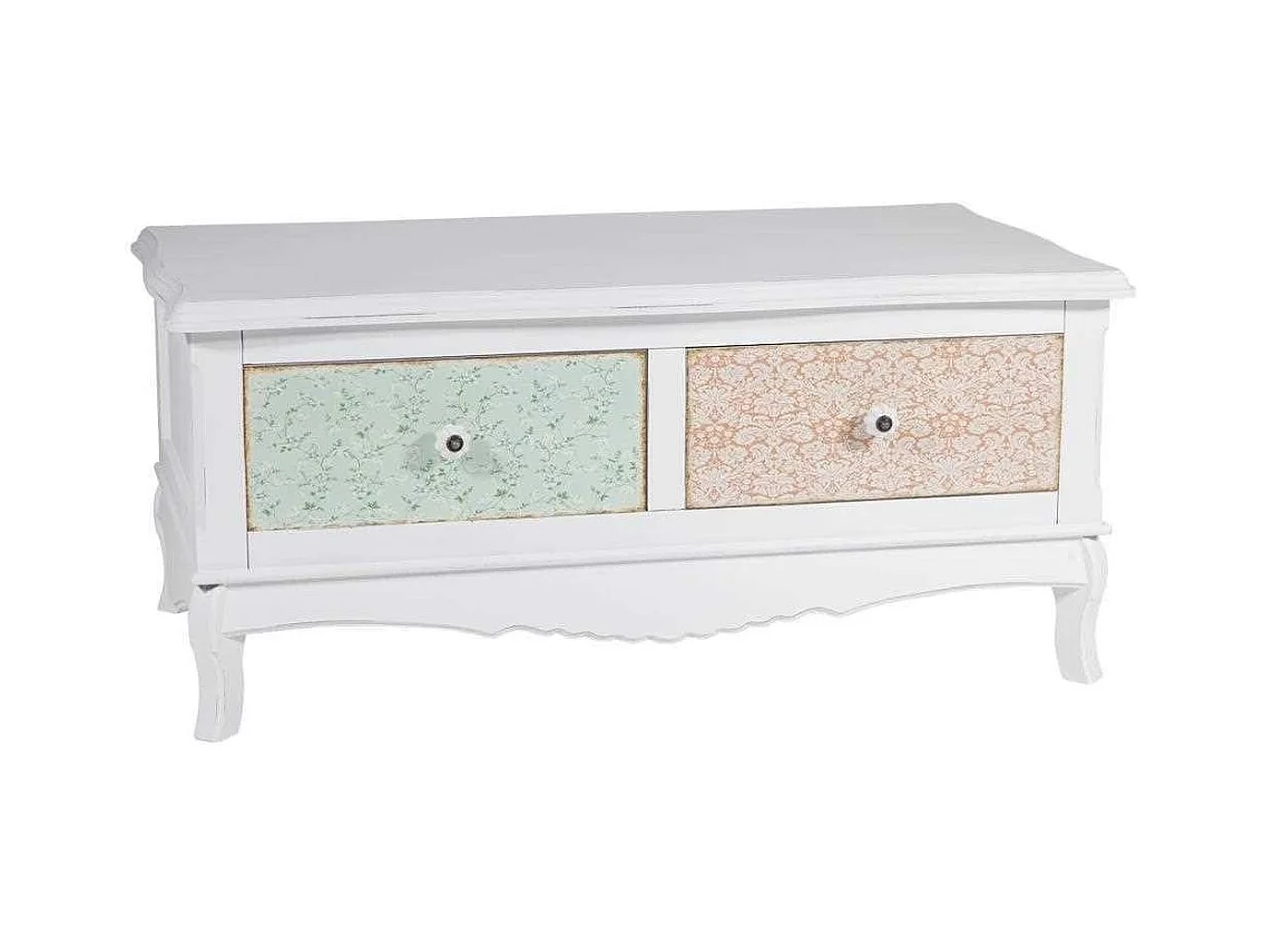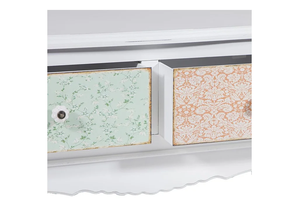 Mesa auxiliar fabricada en madera de mango y detalles pintados a mano