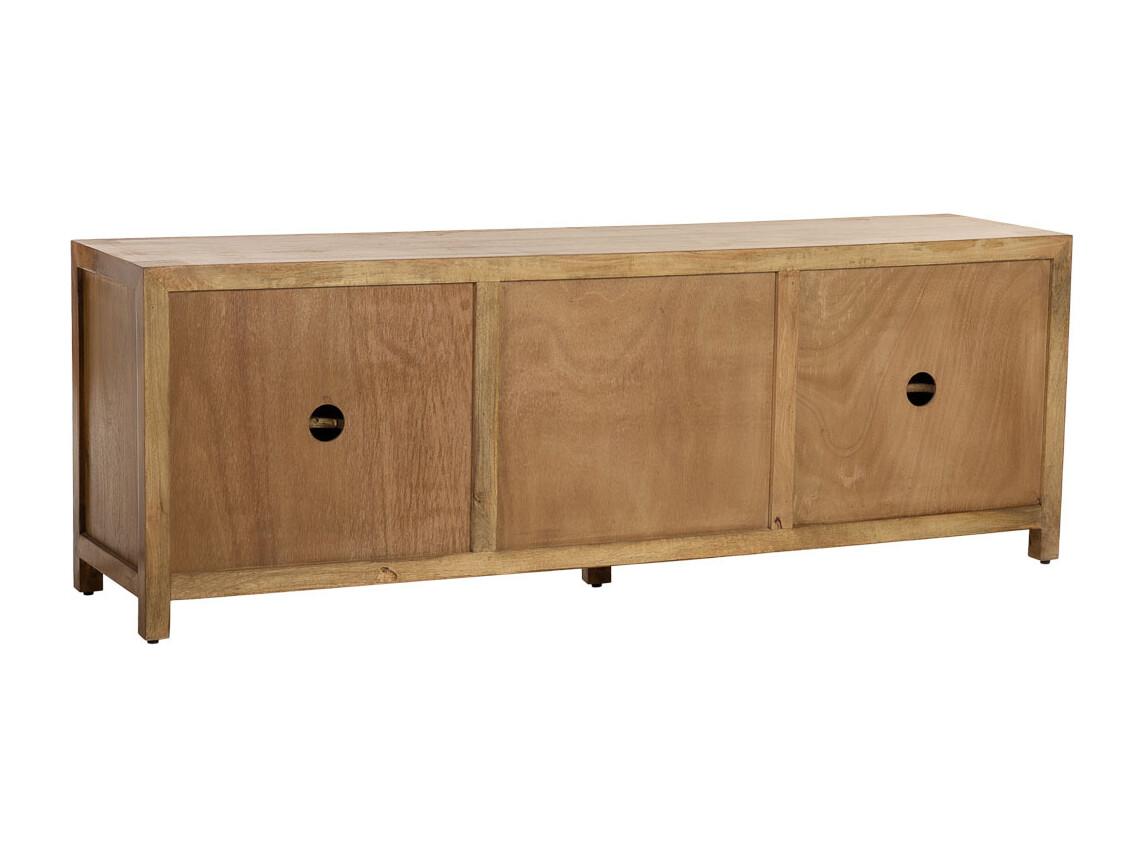 MENTON-Mueble TV de 3 puertas L170 cm de madera maciza de mango Nogal