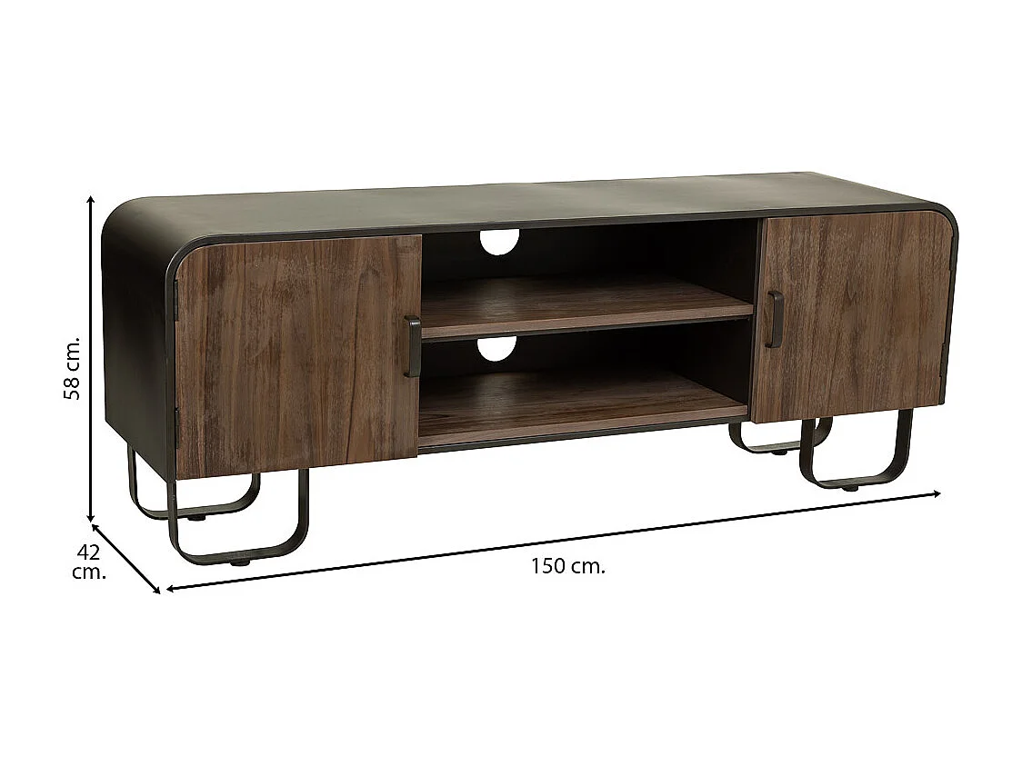 Mueble bajo de madera y metal negro 150x42x58h cm