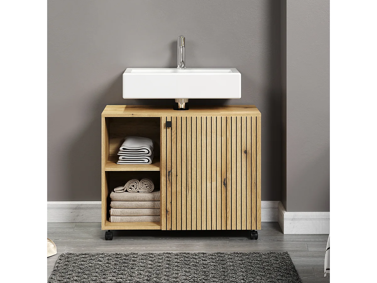 Mueble bajo lavabo con ruedas 1 puerta y 2 nichos L80 cm - PUREBLISS