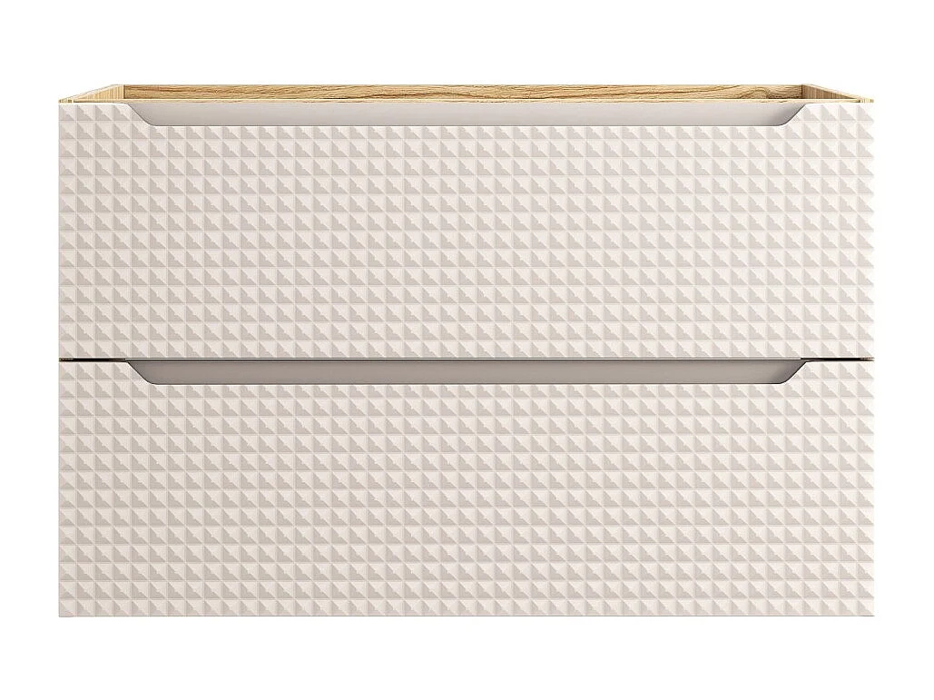Mueble bajo lavabo VELNIA – 2 cajones – 90 cm – Color roble claro y beige – Para colgar