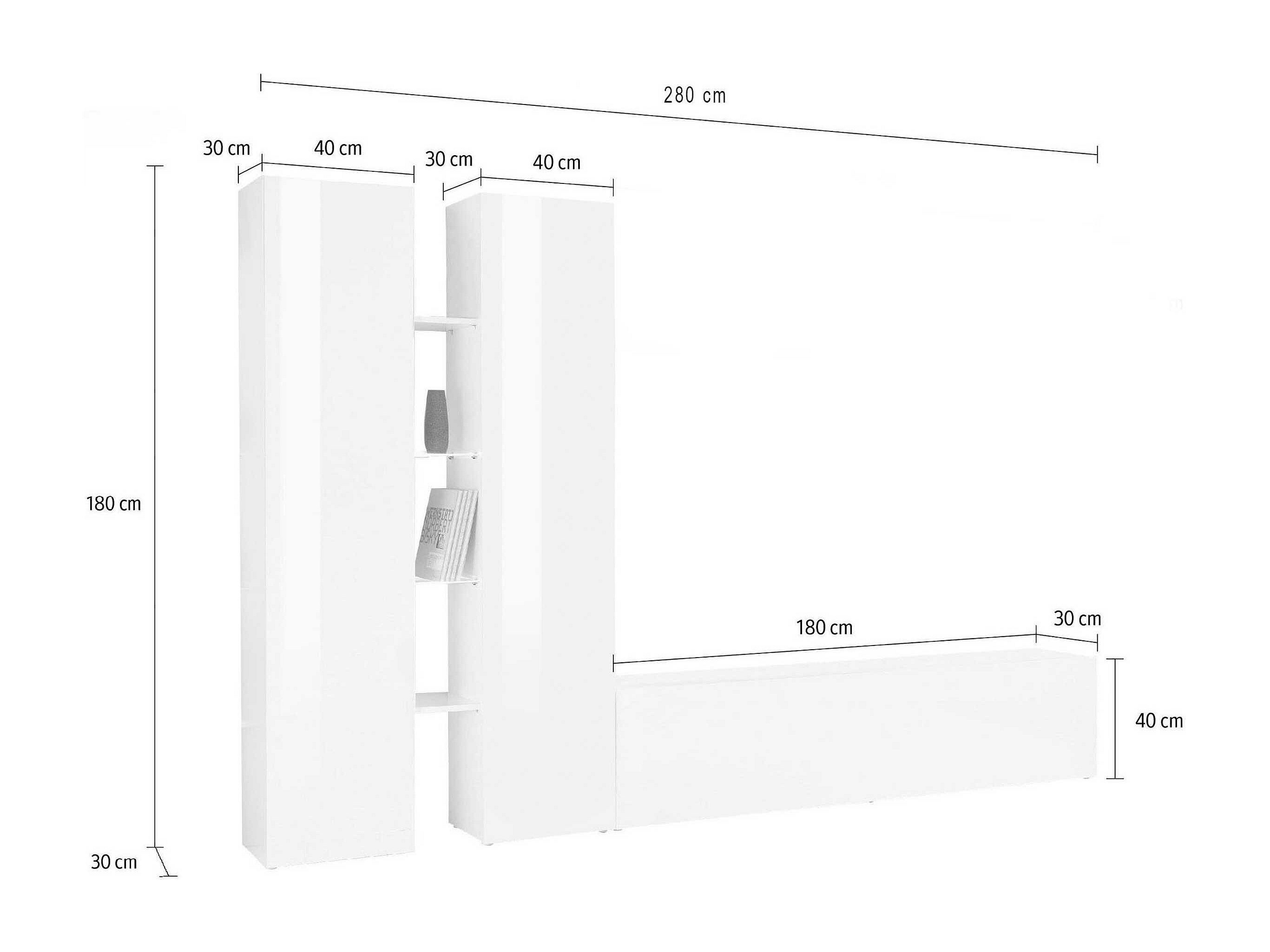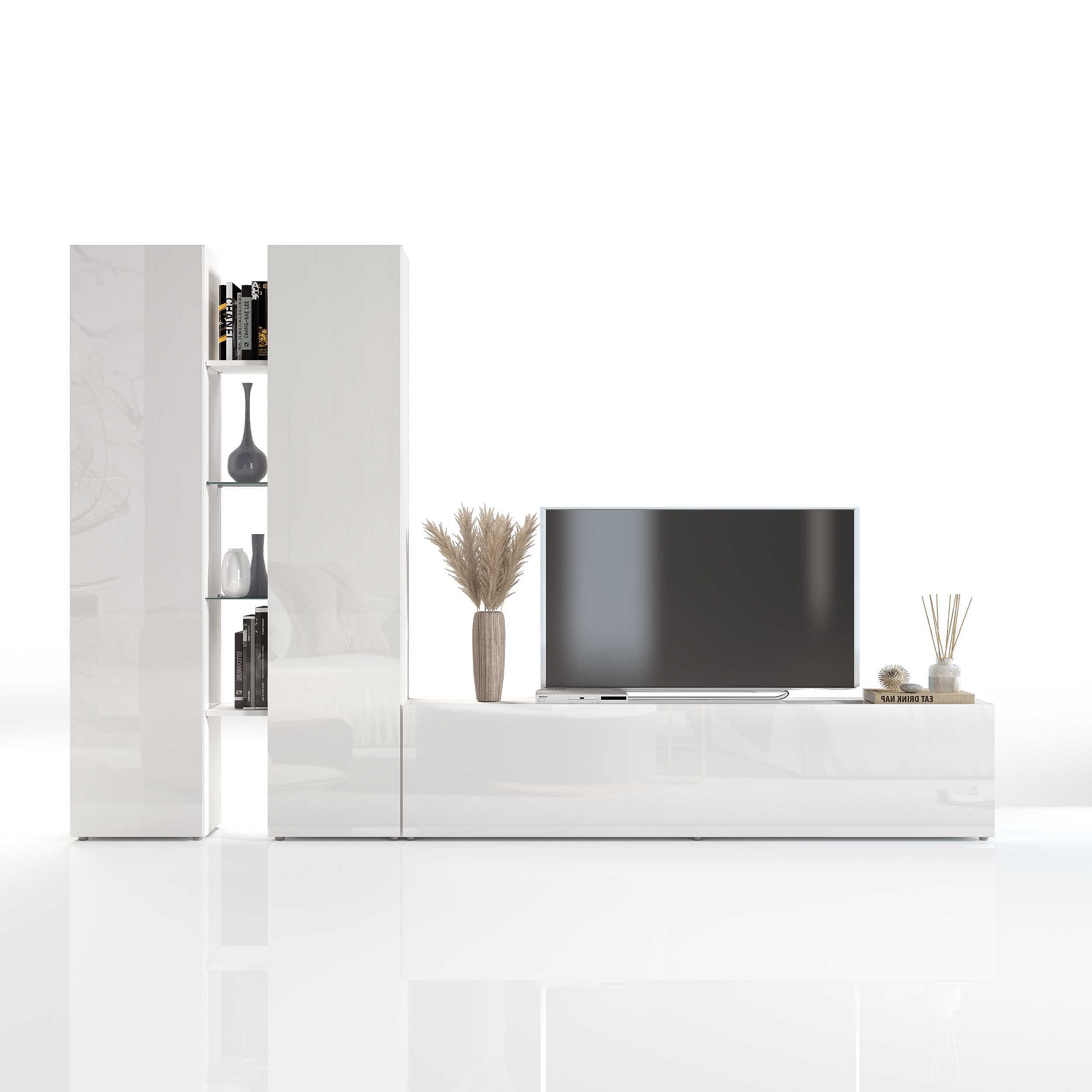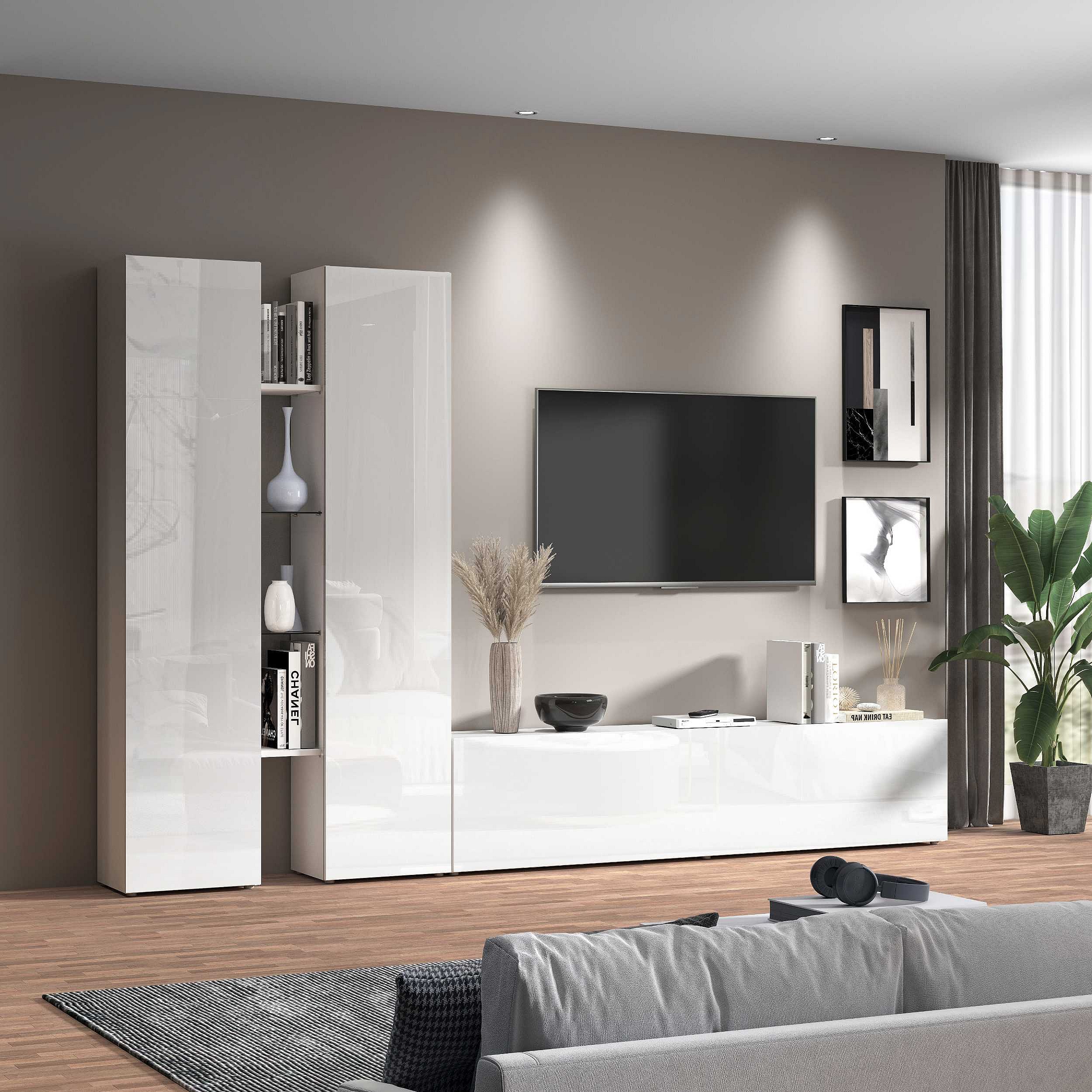 Mueble bajo TV blanco 4 estantes 2 armarios Sage WH