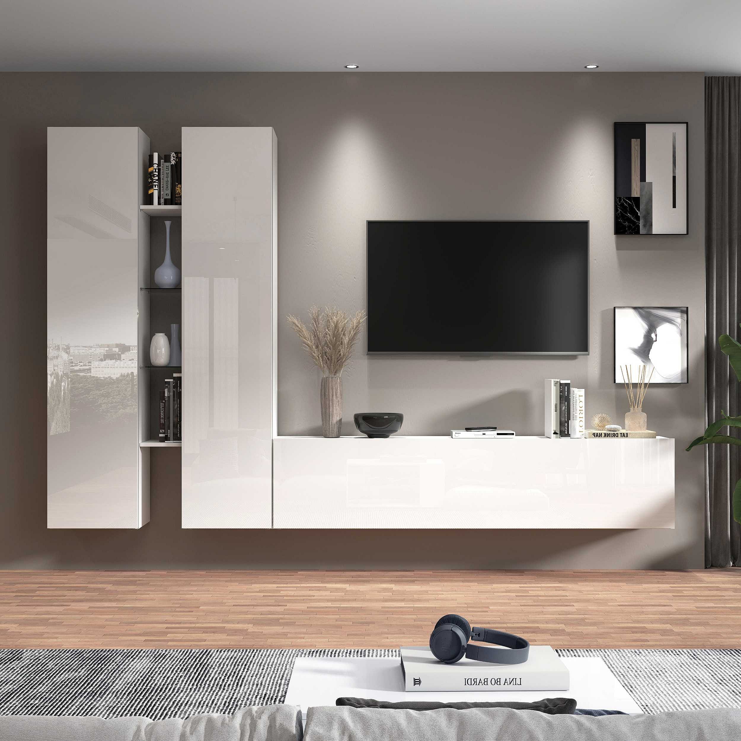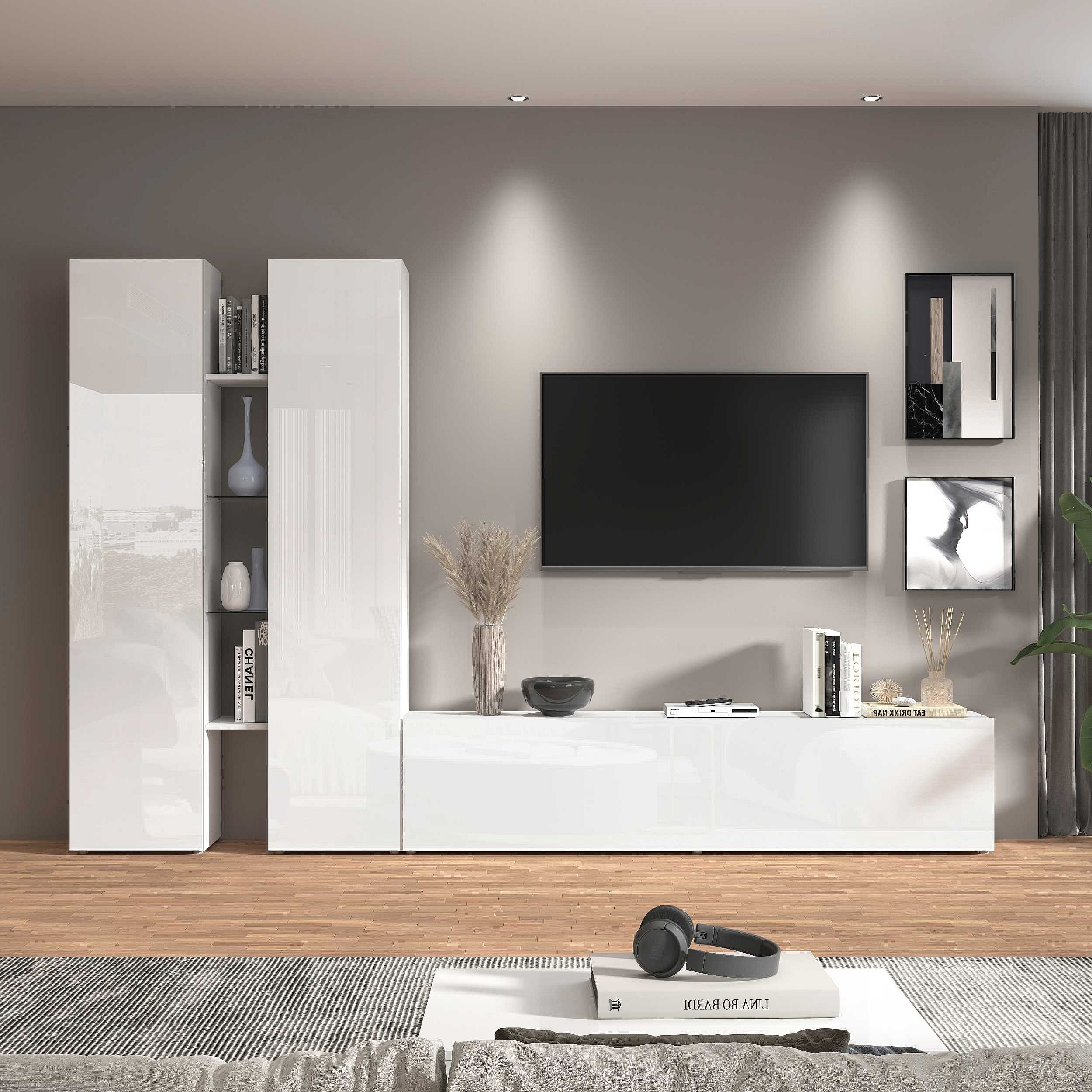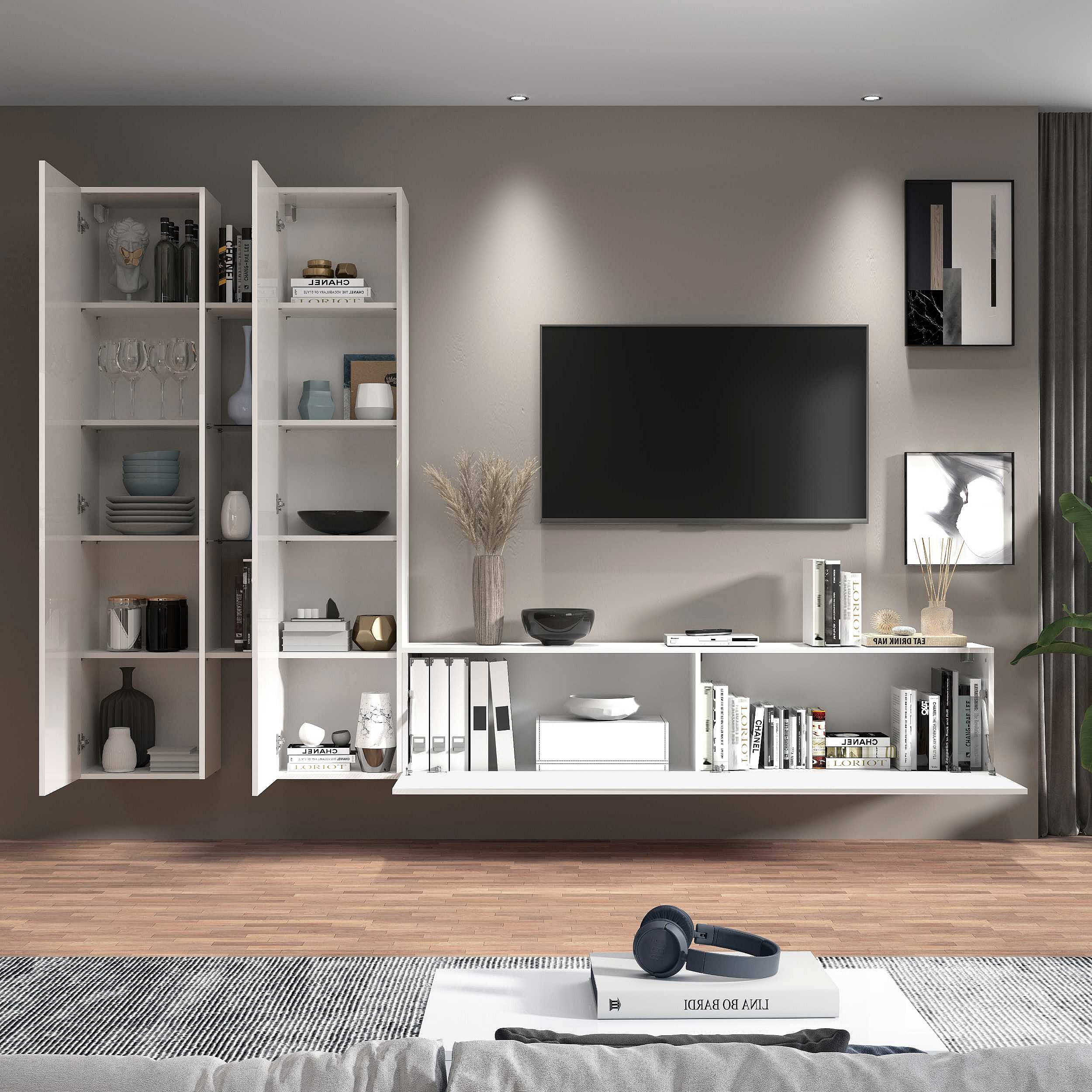 Mueble bajo TV blanco 4 estantes 2 armarios Sage WH