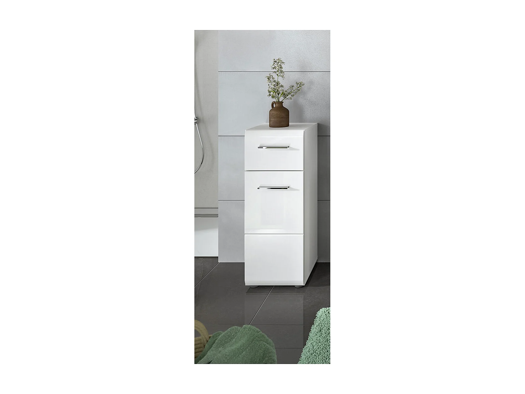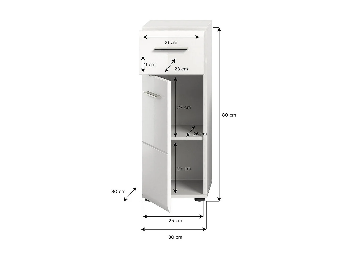 Muebles de baño con puerta pequeña de 3 cajones, unidad de almacenamiento con puerta, estante de pie - 80x25x22cm - blanco