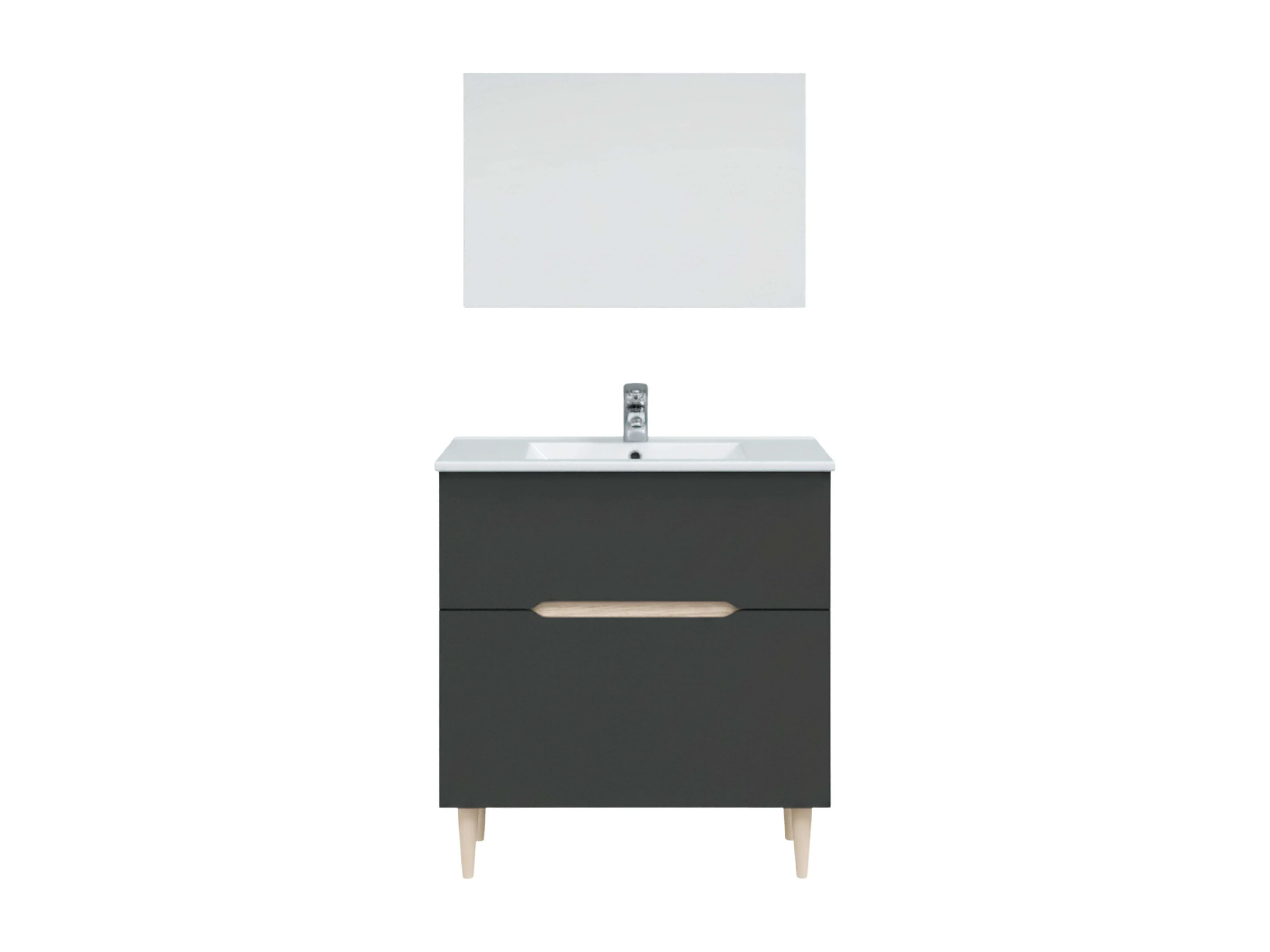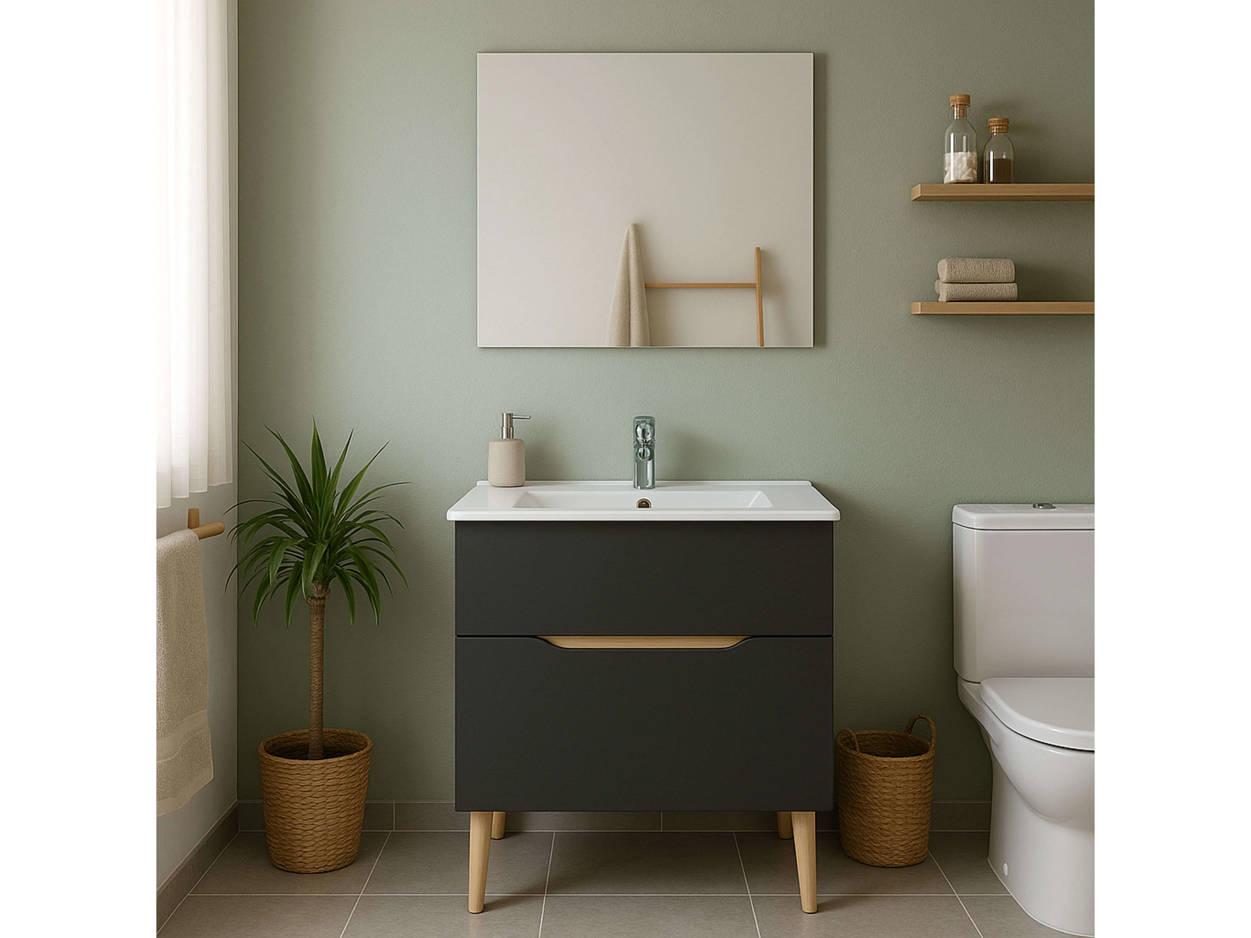 Mueble Baño c/espejo Lotto Gris antracita y roble 80x45x80 cm (Sin lavabo)