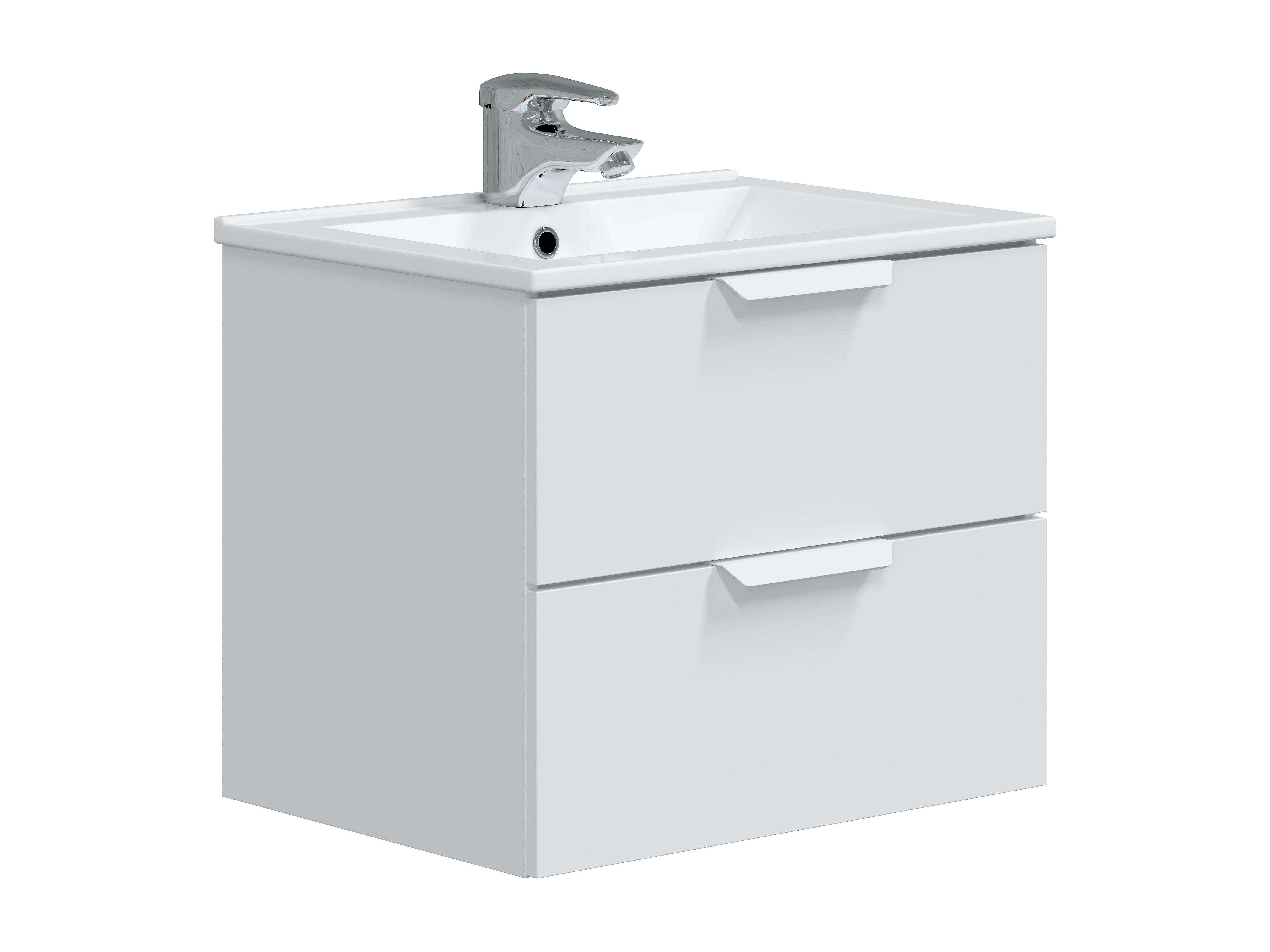 Mueble Baño Suspendido Contemporáneo Blanco 60cm (Lavabo Cerámico)