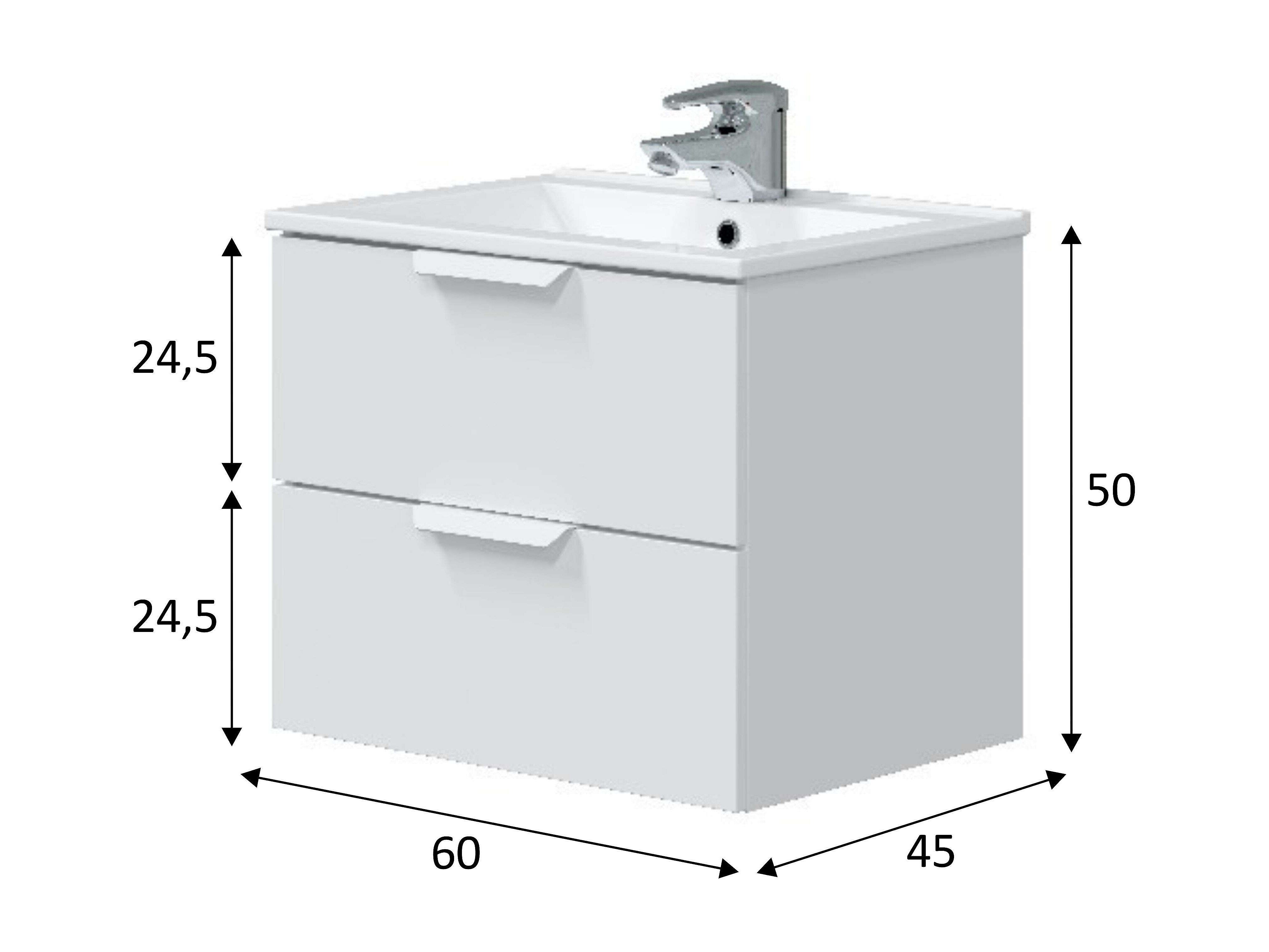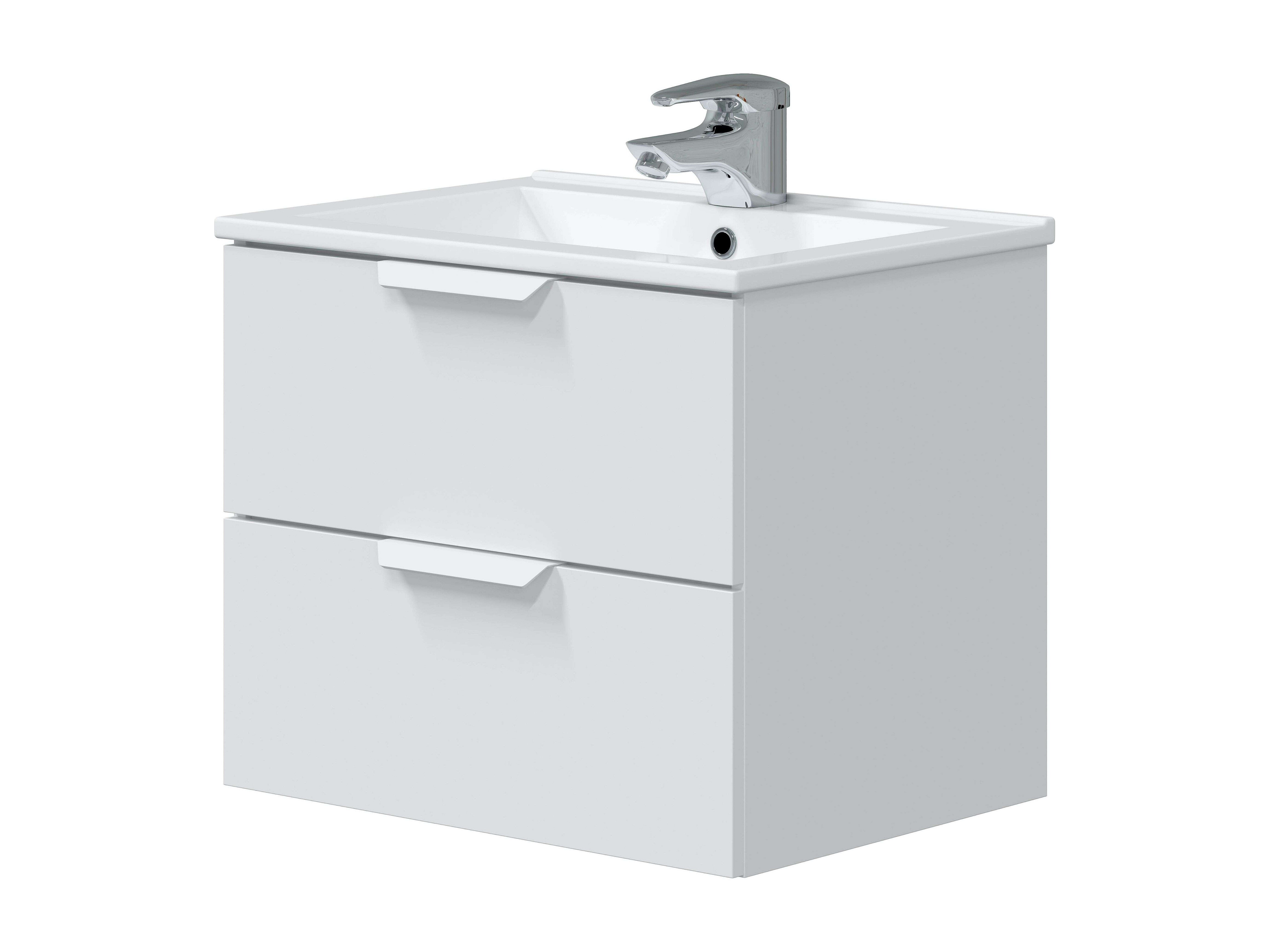 Mueble de baño flotante con lavabo, 60 x 38.5 x 52 cm, Blanco Mate,Con 2 Cajones, Muebles de Alta Calidad, AICA