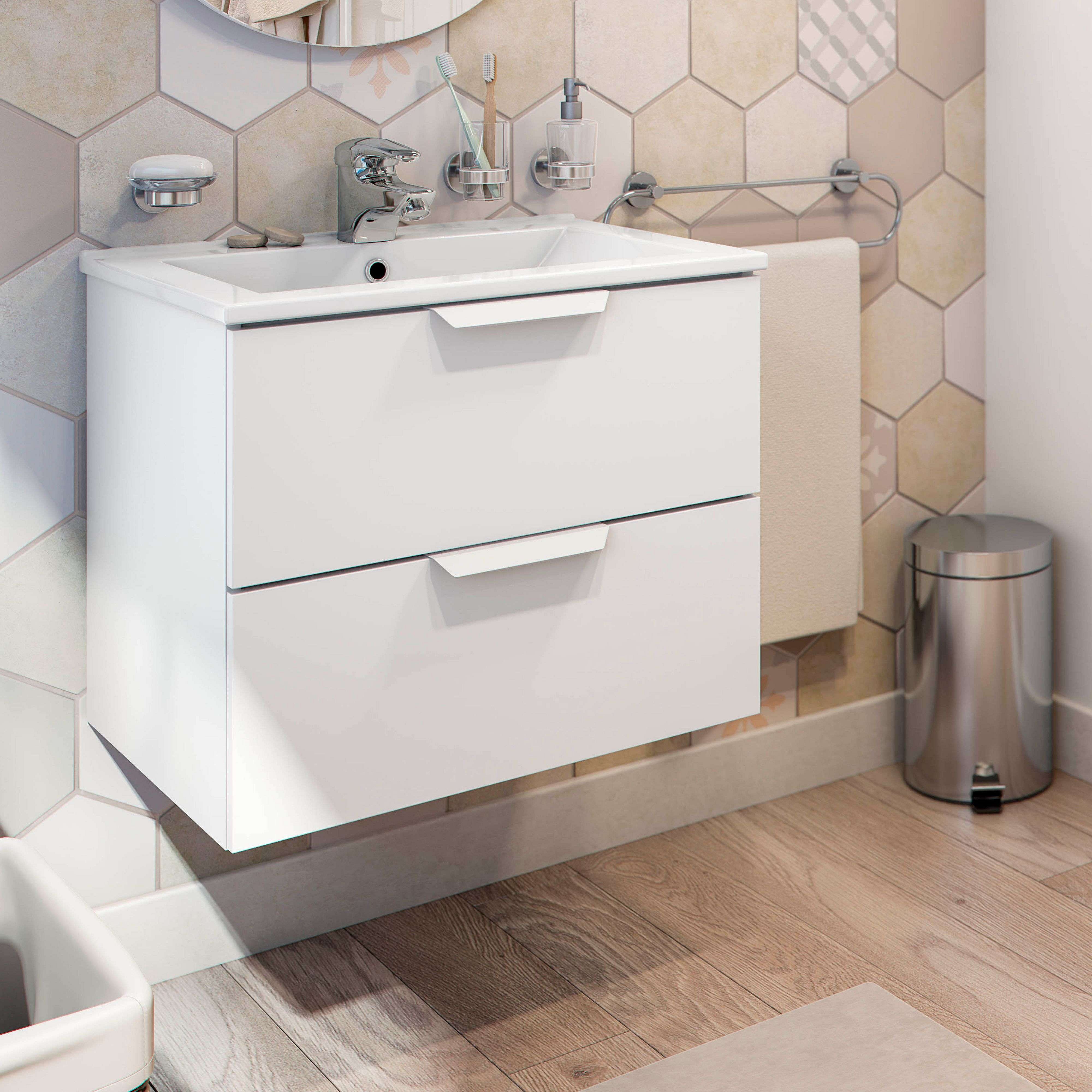 Mueble Baño Suspendido 60 cm Contemporáneo Blanco Brillo (Sin Lavabo)