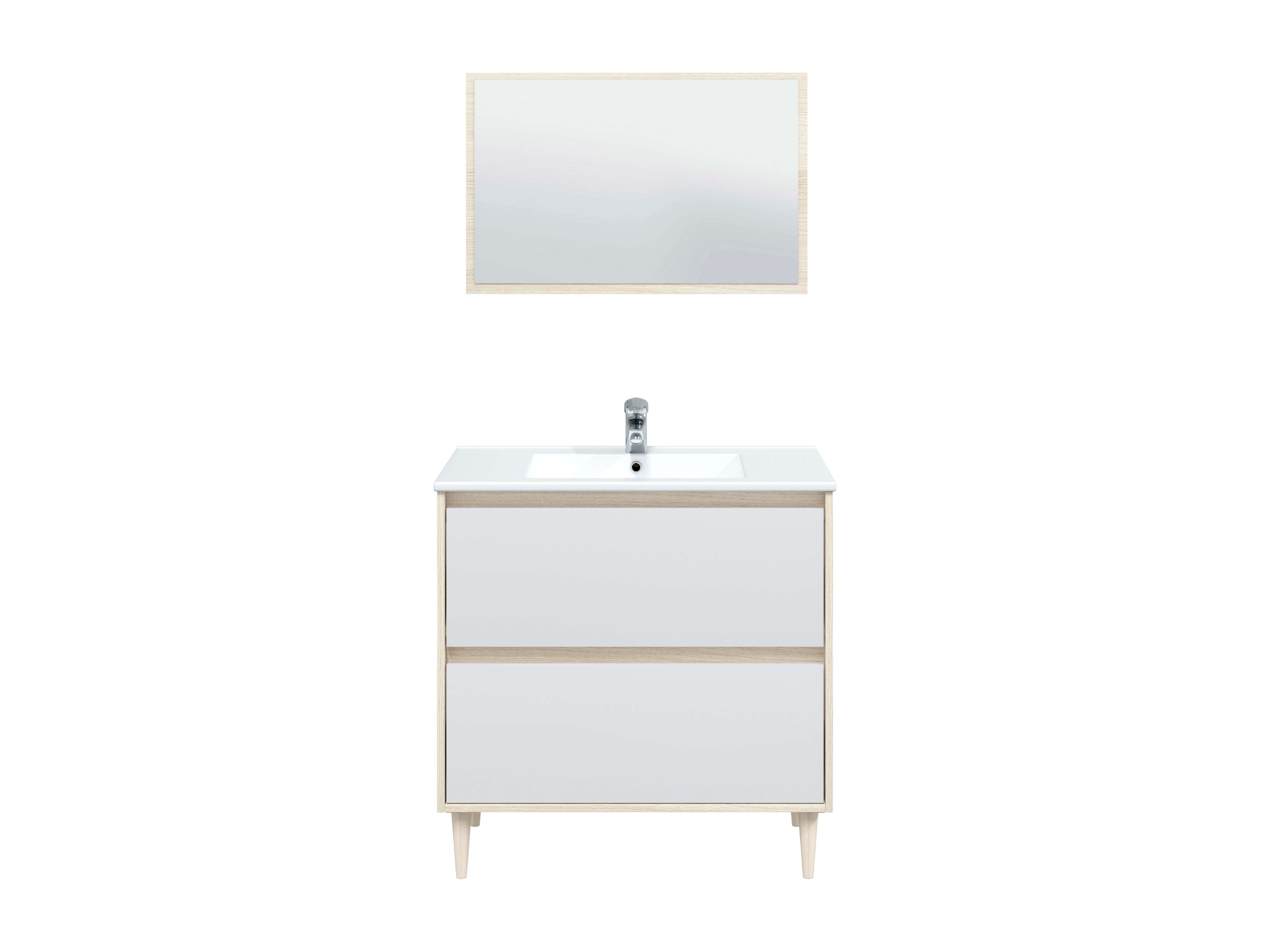 Mueble Baño Verona c/Patas y Lavabo PmmA Blanco Brillo Roble 80x45x80 cm