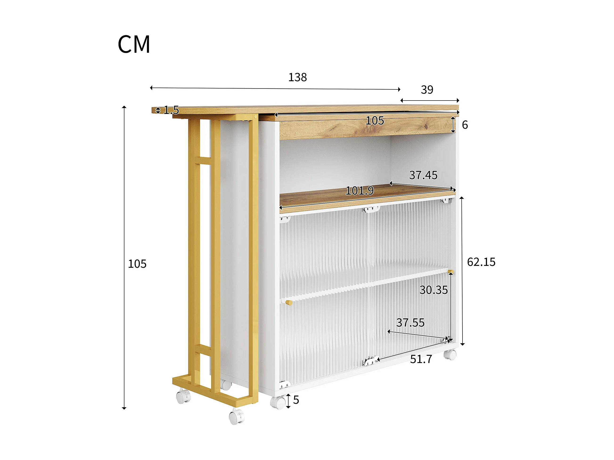 Mueble bar giratorio - Mesa de bar extensible con iluminación LED y puertas corredizas de vidrio - espacio de almacenamiento abierto - blanco