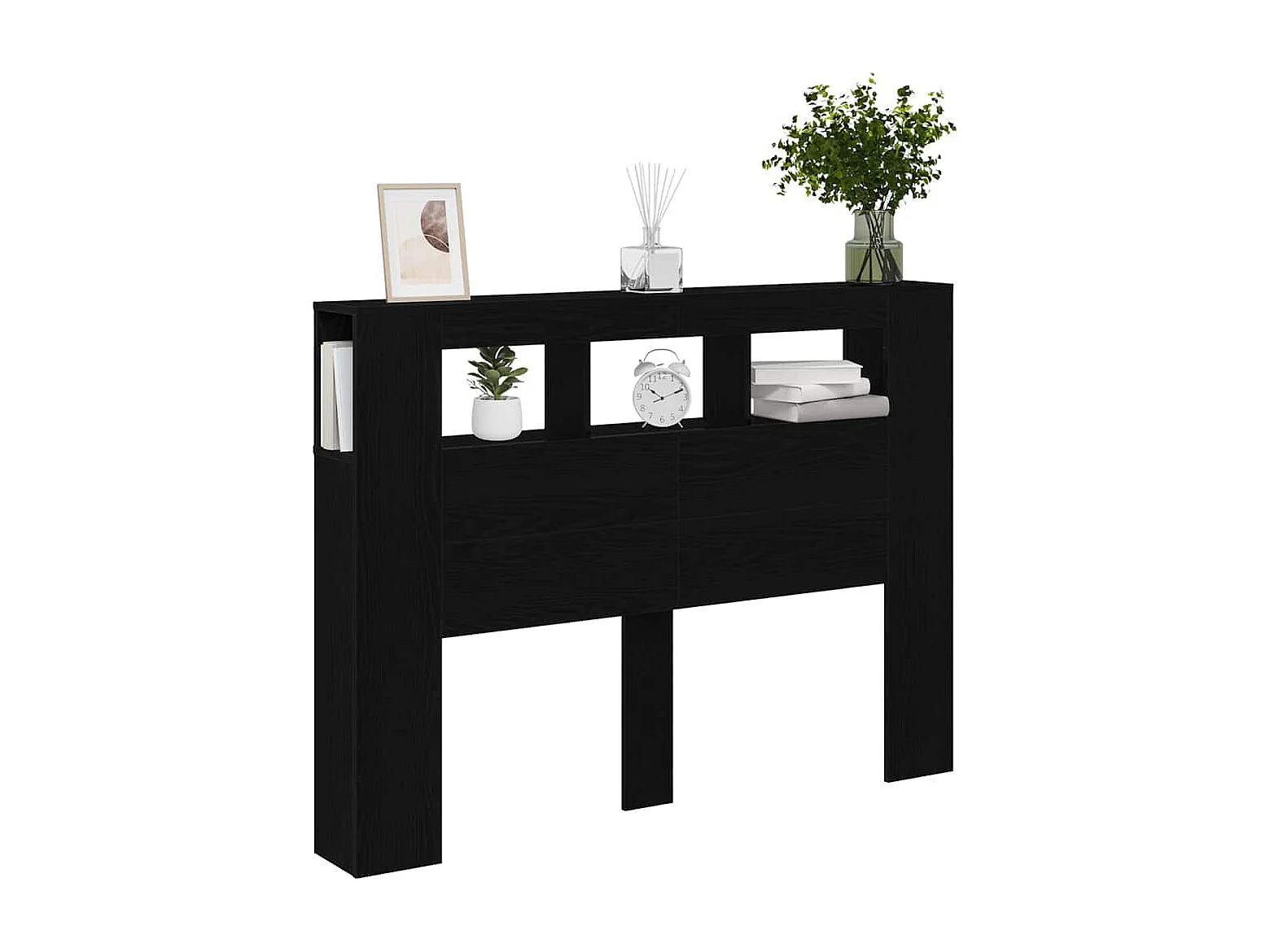 Mueble cabecero | Cabecero | Cabezal de cama LED con estante Roble negro 140 x 18.5 x 103.5 cm