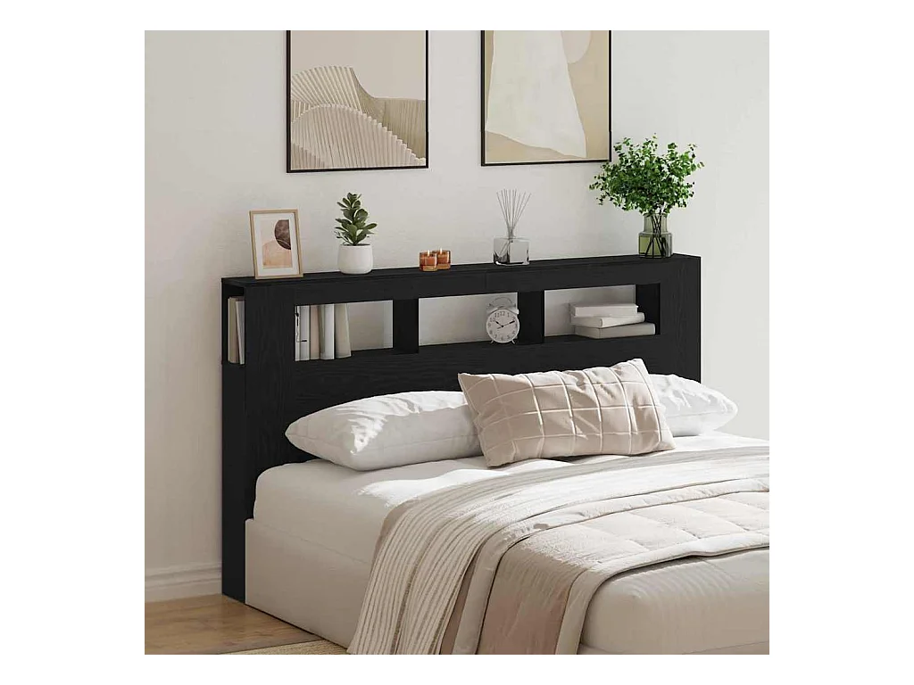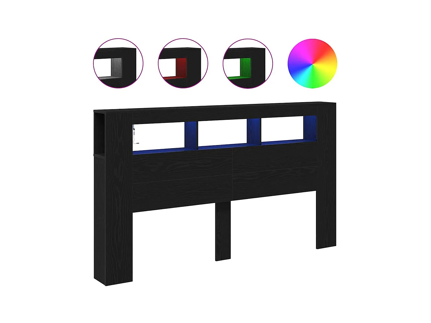 Mueble cabecero | Cabecero | Cabezal de cama LED con estante Roble negro 180 x 18.5 x 103.5 cm