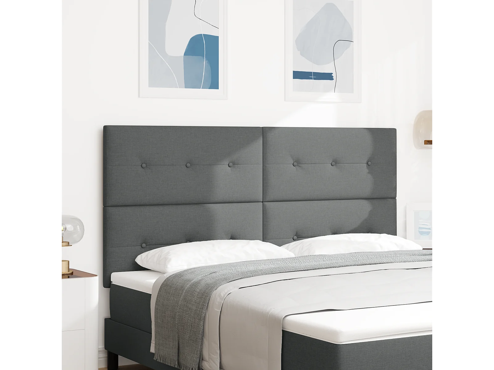 Mueble cabecero | Cabecero | Cabezal de cama LED con luces de tiras LED Gris oscuro 180 cm tela