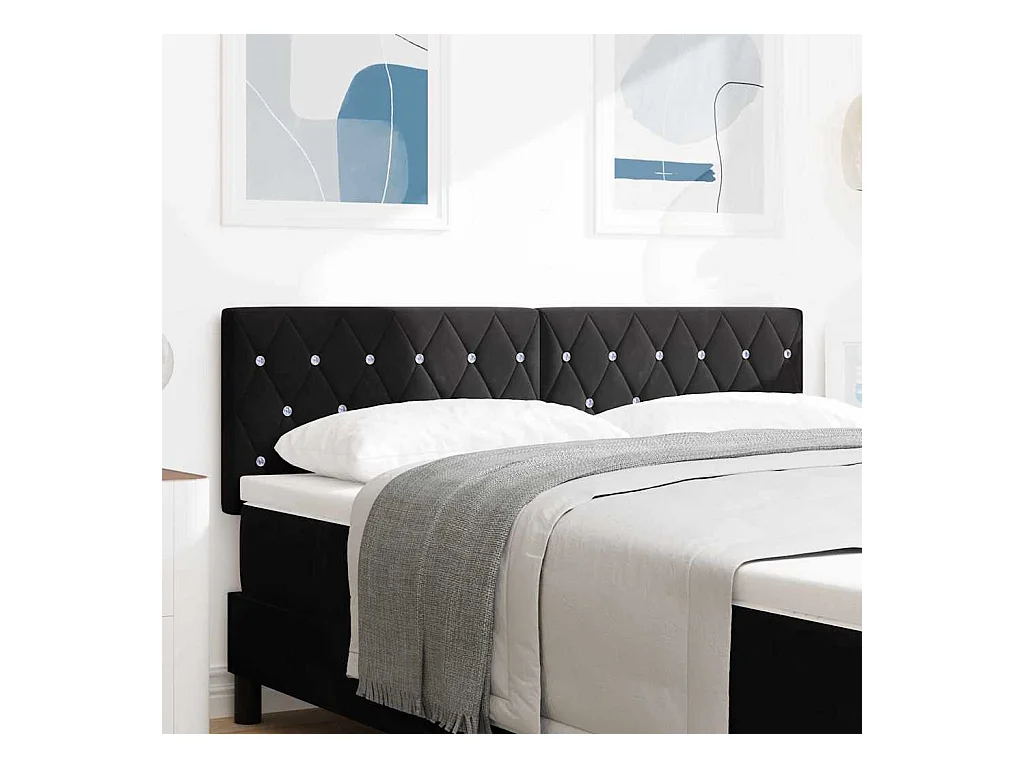 Cabeceros | Cabezal de cama | Mueble de cabecero 4 unidades terciopelo negro 72x7x78/88 cm