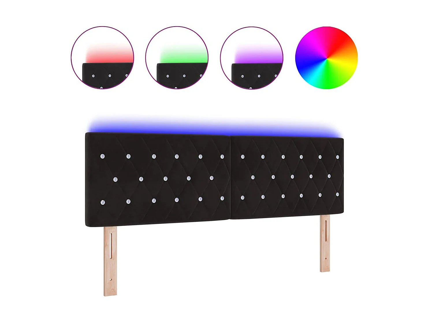 Cabecero | Cabezal de Cama | Mueble cabecero con LED de terciopelo negro 144x5x78/88 cm