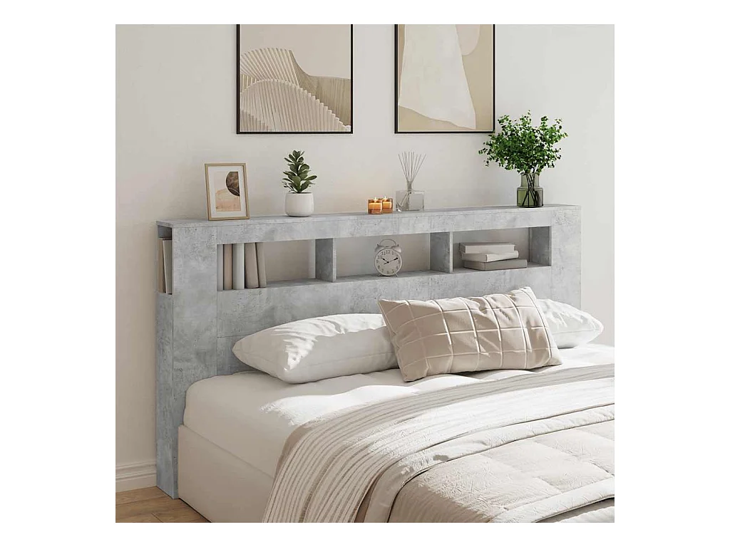 Mueble cabecero | Cabecero | Cabezal de cama LED madera ingeniería gris hormigón 180x18,5x103,5 cm