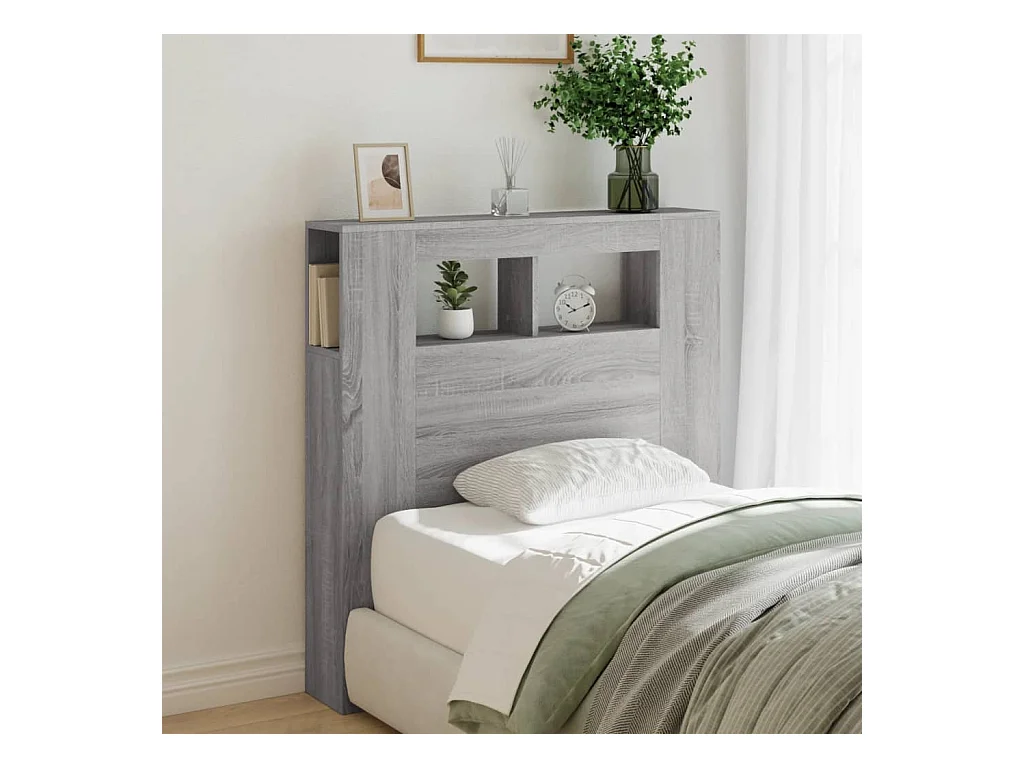 Cabecero de Cama | Cabezal de cama | Mueble de cabecero con luz LED gris Sonoma 100x17x102 cm