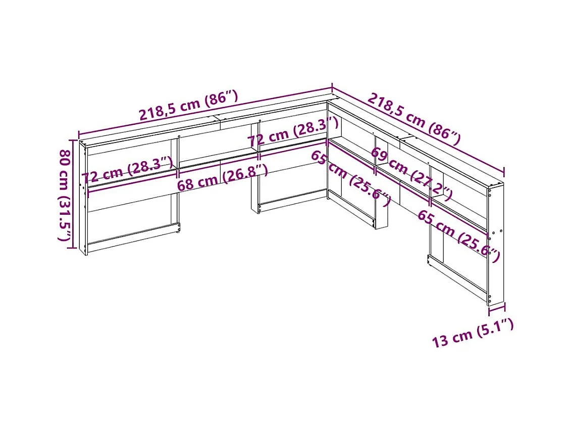 Mueble cabecero | Cabecero | Cabezal de cama librería en forma L madera maciza pino blanco 180 cm