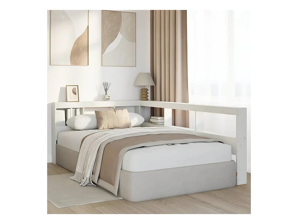 Mueble cabecero | Cabecero | Cabezal de cama librería en forma L madera maciza pino blanco 120 cm