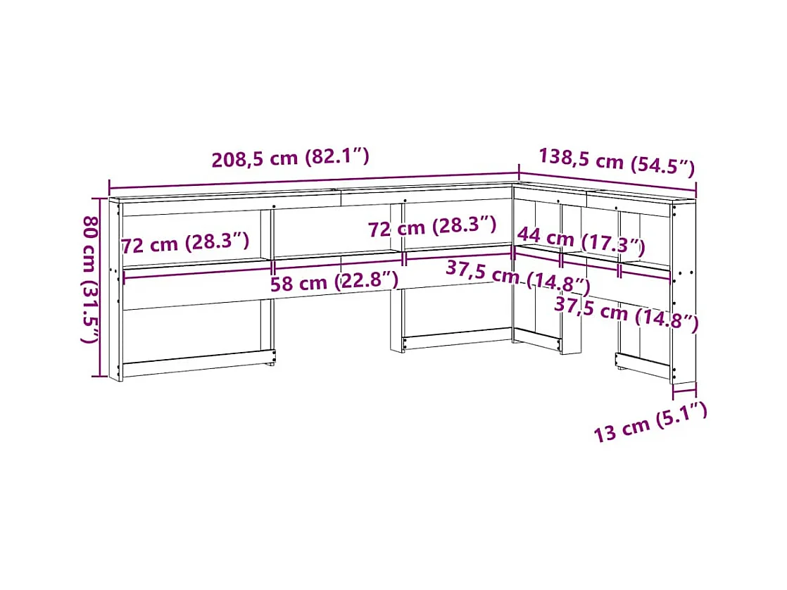Mueble cabecero | Cabecero | Cabezal de cama librería en forma de L madera maciza pino blanco 90cm